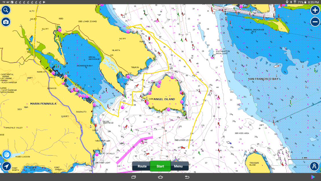 A long overdue trip out with Bob & Dave, over towards Alcatraz, behind Angel Island and off to anchor in Paradise Cove. Sarah & David on Gigi came by, but with no dinghy between us it was a yell and a wave. Up anchor and being with the tide down Racoon Straights. A good sail with our good friends, and some chatting about changing from Pistachio to a Passport 42 that we have been looking at.