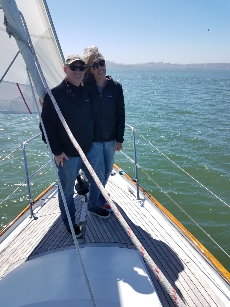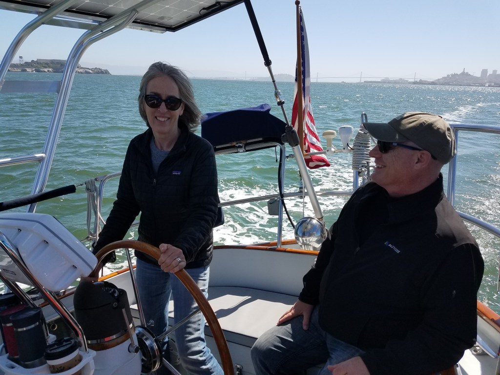 Its always interesting having folks join us for a sail. Most people seem to have a pleasant enough time, but you can never tell if they are going to just enjoy a day out on the water, or whether they are going get attracted to the magic of sailing, and truly engage all the parts of running the boat. Sometimes one half of a couple ‘gets it’ and the other half is less thrilled. Liz and Scott were both in the ‘engaged ‘ camp, and seemed to catch the sailing bug (or at least faked it well).