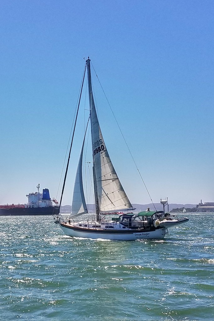 After a Sowerby sighting in a boat from Modern Sailing, we also saw ‘Dream Catcher’, a Passport 42 from Alameda looking fine. Tacking into the now waning current, we completed a circumnavigation of Angel Island, getting Liz and Scott back in perfect time (we run a tight ship folks) to head to Easter dinner.