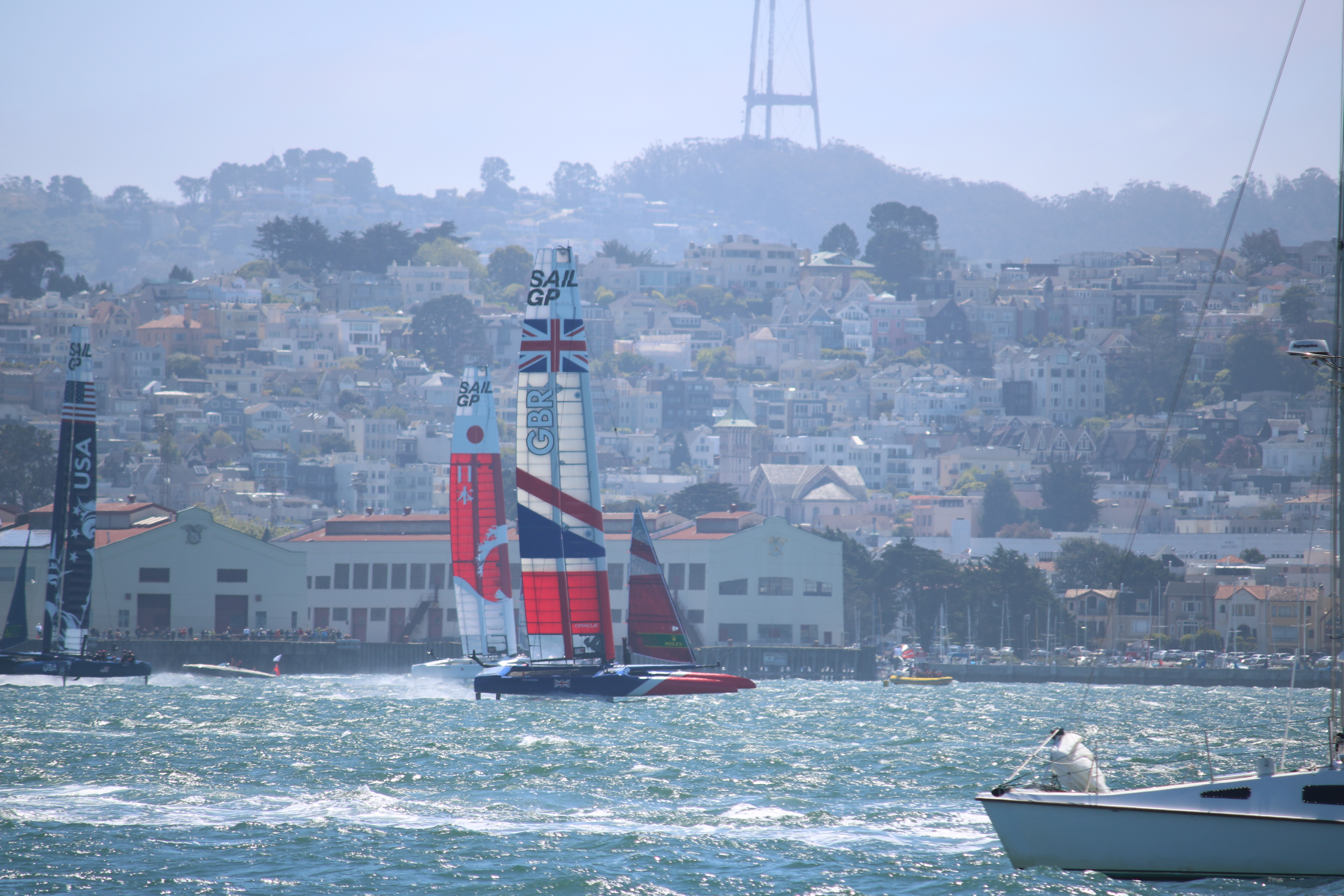 A nice beat home, totally beating the pants of a Valiant 40 and a Gozzard (the Gozzard was hardly making any progress in Racoon Straights relative to us). Through the Straights, we headed over to the City, just in time to see a few of the SailGP boats up close as they headed off at great speed, with a whirring, grinding sound.