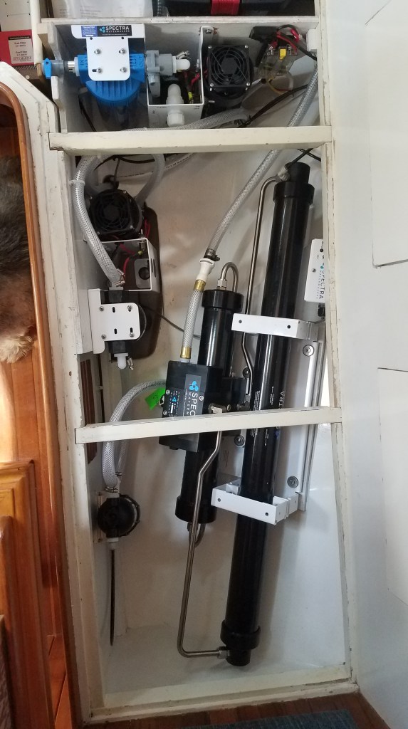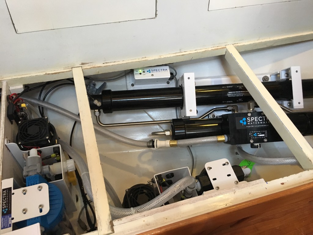 Well, we’d been talking about this one for a good year or so, and finally ‘bit the bullet’ and did so in a pretty big way, rejecting the base (and likely perfectly fine) model for the upgrade ‘Cape Horn 330 Extreme’. Of note here is that we have absolutely no intention of going anywhere near Cape Horn, but even if we aren’t up to the task, we’ll now we have a watermaker named after the ‘Everest of the Sea’. And to boot … we added the z-ion option, so we are indeed well equipped for fresh water.