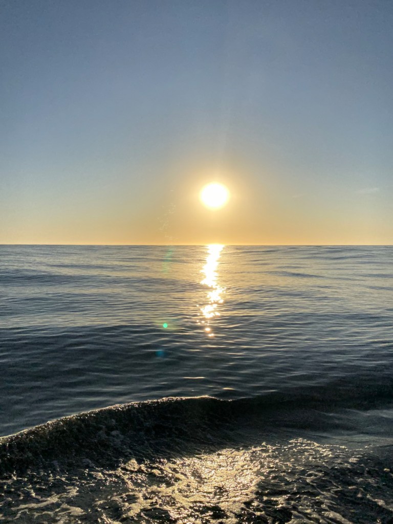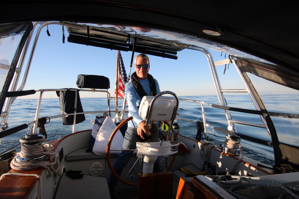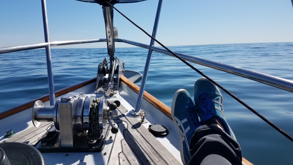 The sunrise at 615am was joined by blue skies and wind. Not a cloud anywhere. The kind of morning everyone thinks about when thinking of sailing except for one thing….. it’s damn cold.