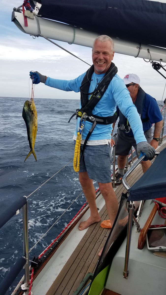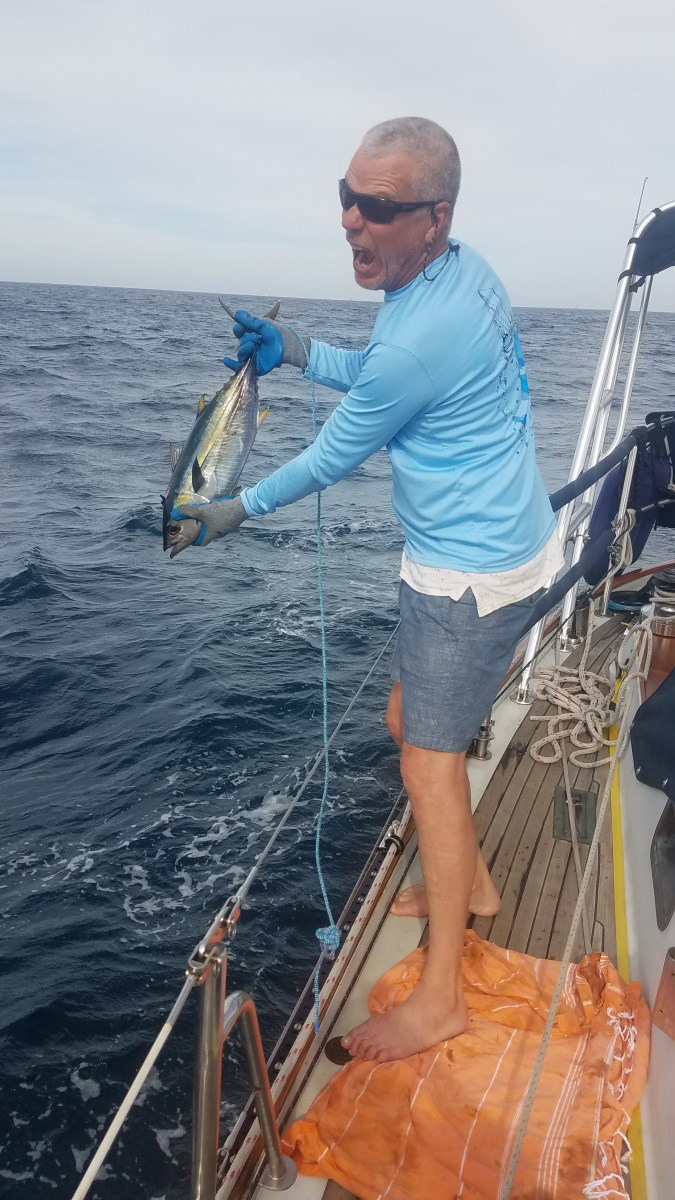 The winds stayed very consistent all day and into the night with 10-18 knots pushing us along with the main and jib out. We noticed some small tears on our Jib and didn’t want to risk it shredding in the night so we took it down just as the sun set. We grilled the dorado and we didn’t lose it and it was amazing. After dinner we again settled into our 3 hour night watch routines.