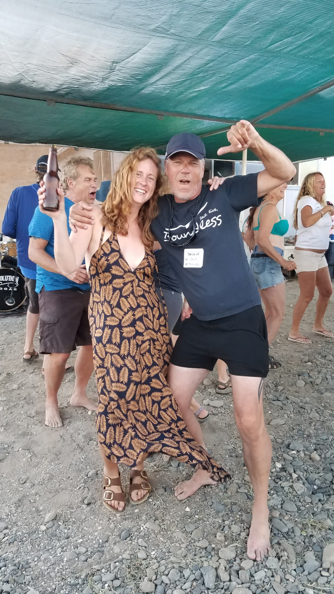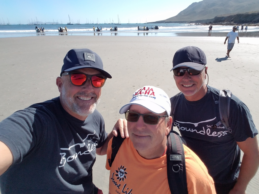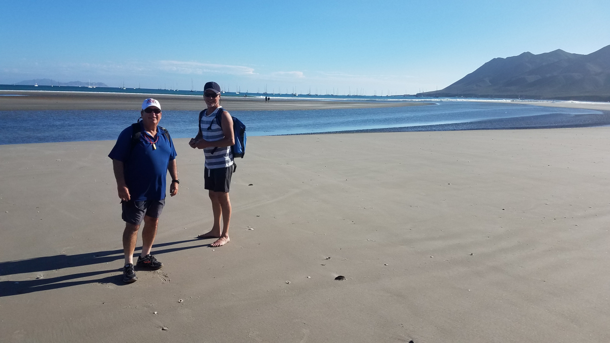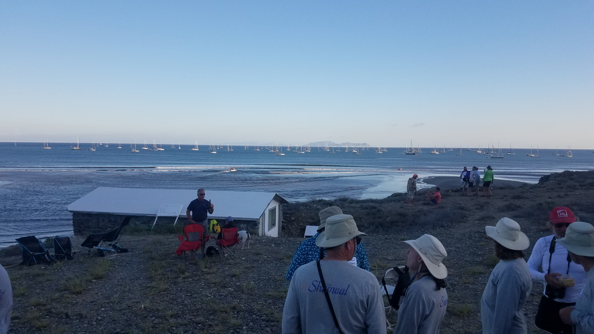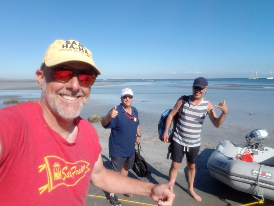 We spent two great days at Bahia Santa Maria. We did our FIRST swim off the boat in the glorious waters of the bay. We visited with friends on their boats. We managed to do a very WET dinghy beaching as we caught a wave and got dumped sideways out of the boat. We did dome beach exploring, spoke with a local that had caught a shark and had lots of laughs! We did some sail changes and some sail repairs ( on our spinnaker) and went to the best Beach party hosted by the Baja Haha organizers. The party was set on a bluff overlooking the bay and had a live band, lots of dancing, lots of food and a lot of very relaxed happy people!