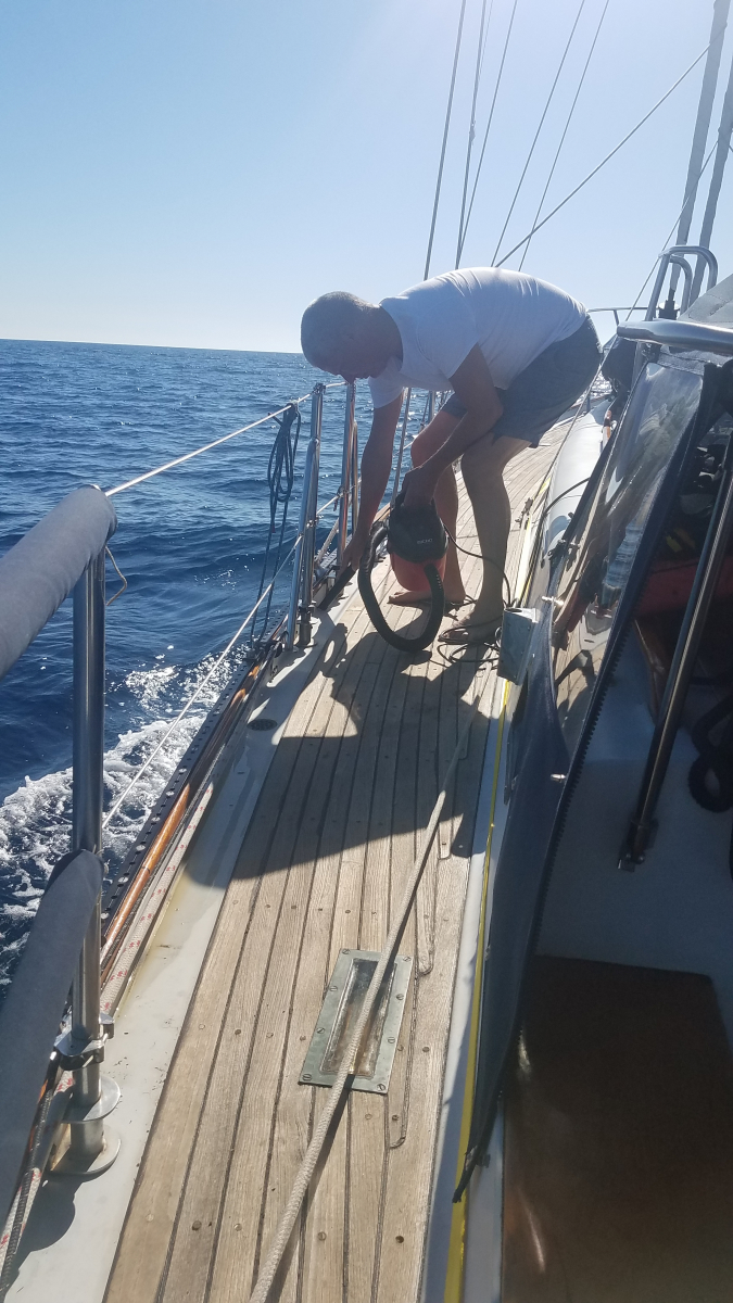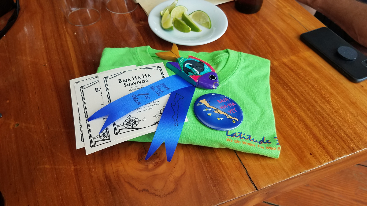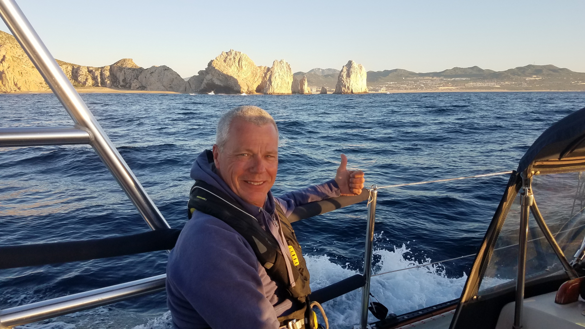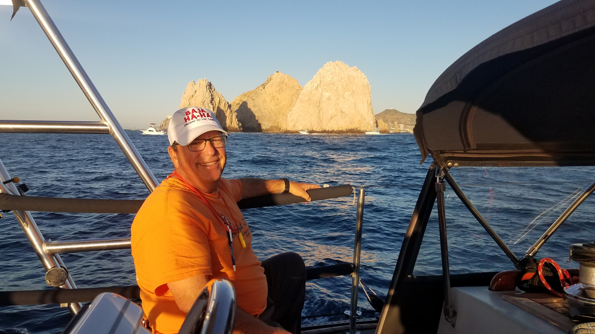 Overnight the air was so warm we were doing middle of the night watches with shorts and t-shirts , with life jackets of course. Around 4 am the lights of the cape of Cabo began to appear on the horizon. As dawn broke we could see the finish of the 2019 Baja appear, Cabo San Lucas Mexico! We were all excited and despite the lack of sleep all stayed on deck to enjoy the entry into port. We had received notice from the Baja organizers that we had managed to get a slip (albeit rafted up to another boat) so we planned on staying in Cabo until the storm had passed by.