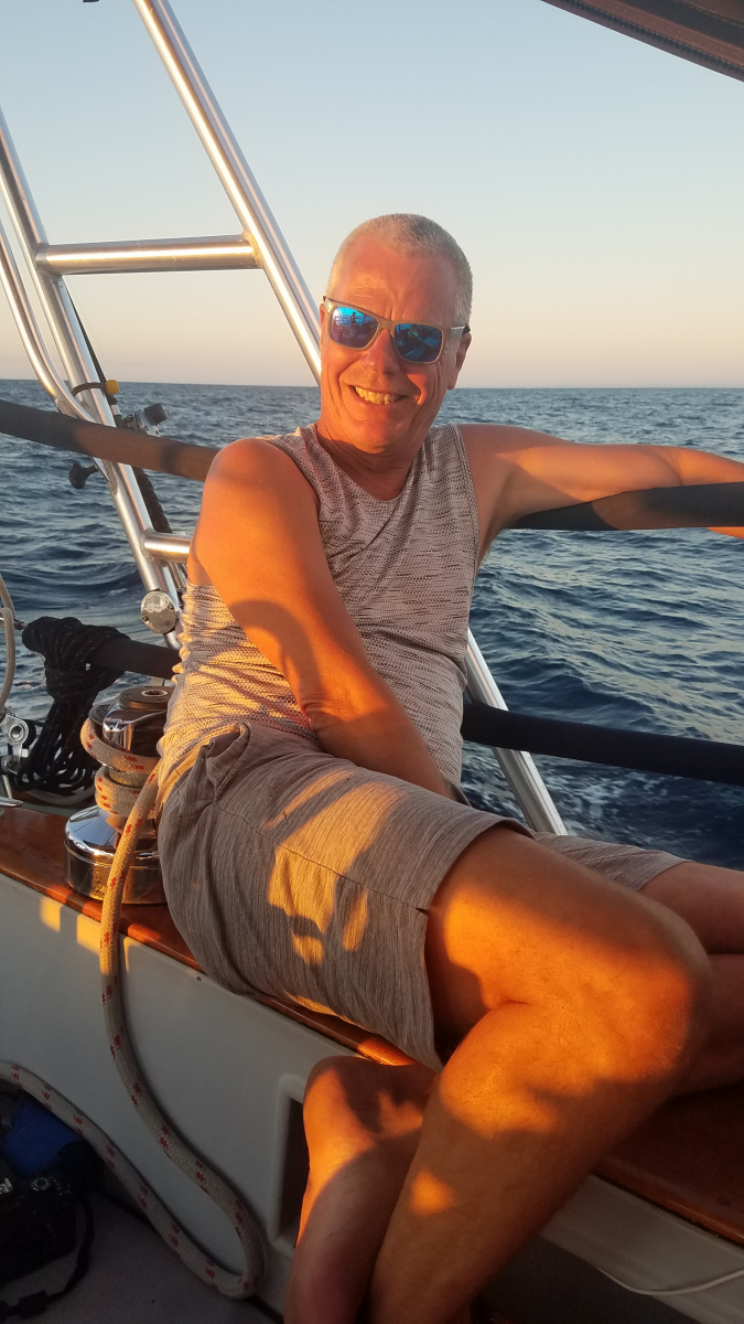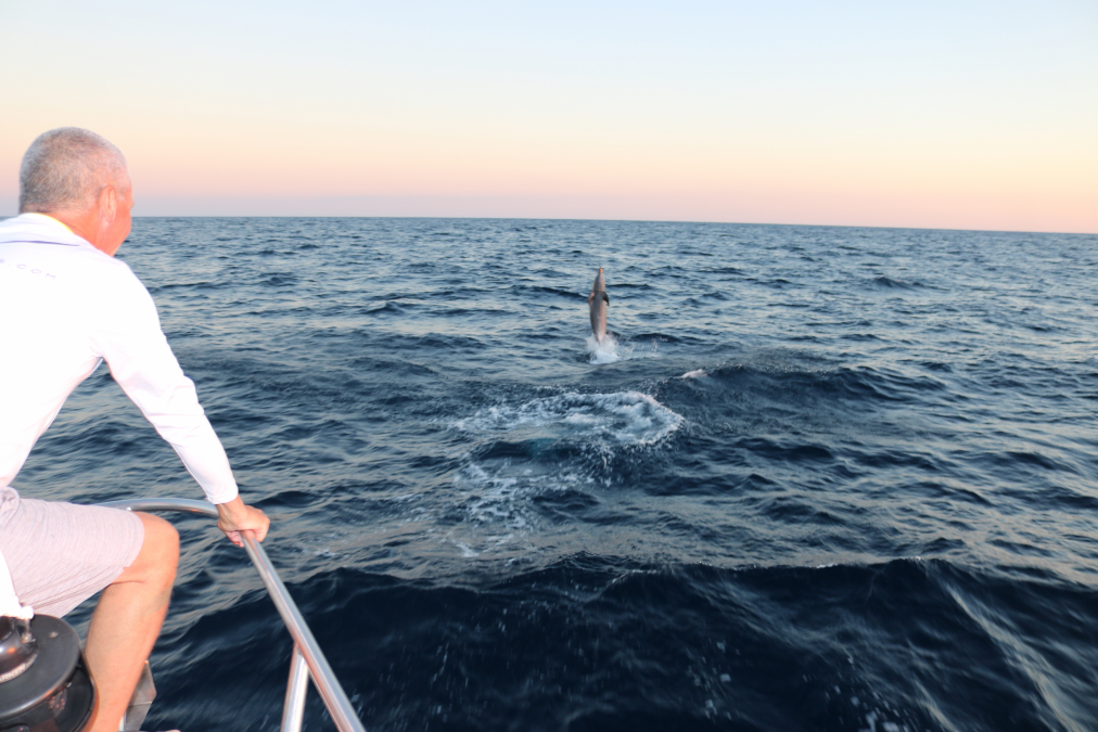 We were treated at sunset to an amazing dolphin show of spinning dolphins who jump out of the water and spin around then crash back into the water over and over. The other thing that was amazing is that these dolphins were very large compared to the others we had seen so far on this trip. A few hours later we were again another incredible experience. We had the most amazing moon rise. It was a sight that I had never experienced before and we all stood in the cockpit watching the moon rise just like a sun and lighten up the horizon. The moon was a strange orange glow ball that increased in size and as it rose higher into the sky it became whiter. We watched the moon as we enjoyed a delicious evening meal prepared by Julian.