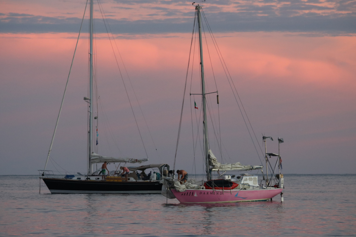Anchored in Bahia de los Muertos just before the interesting ‘pink boat’ Darwind, and along with a small fleet of Baja Haha boats. Although a lovely bay, with a beach bar and lots of interesting panga activity, it was not quite as stunningly picturesque as Los Friales, and we were quite content to not leave the boat, but relax and enjoy the beautiful sunset from the cockpit.