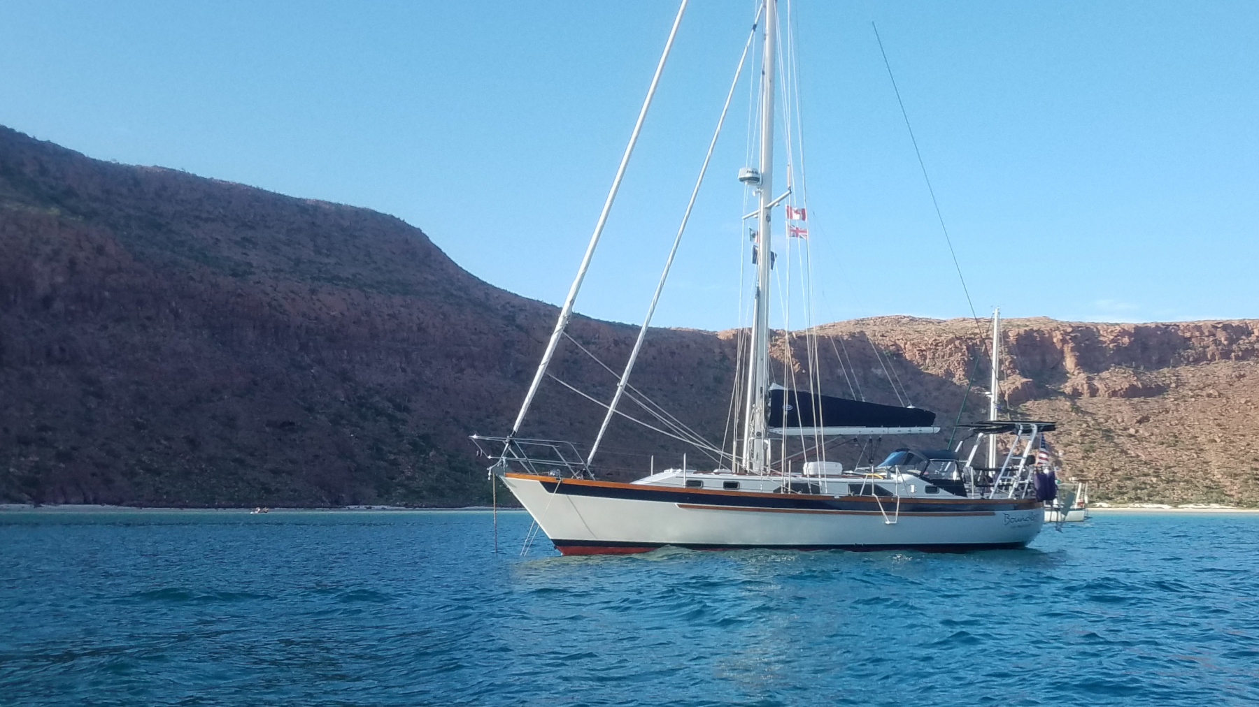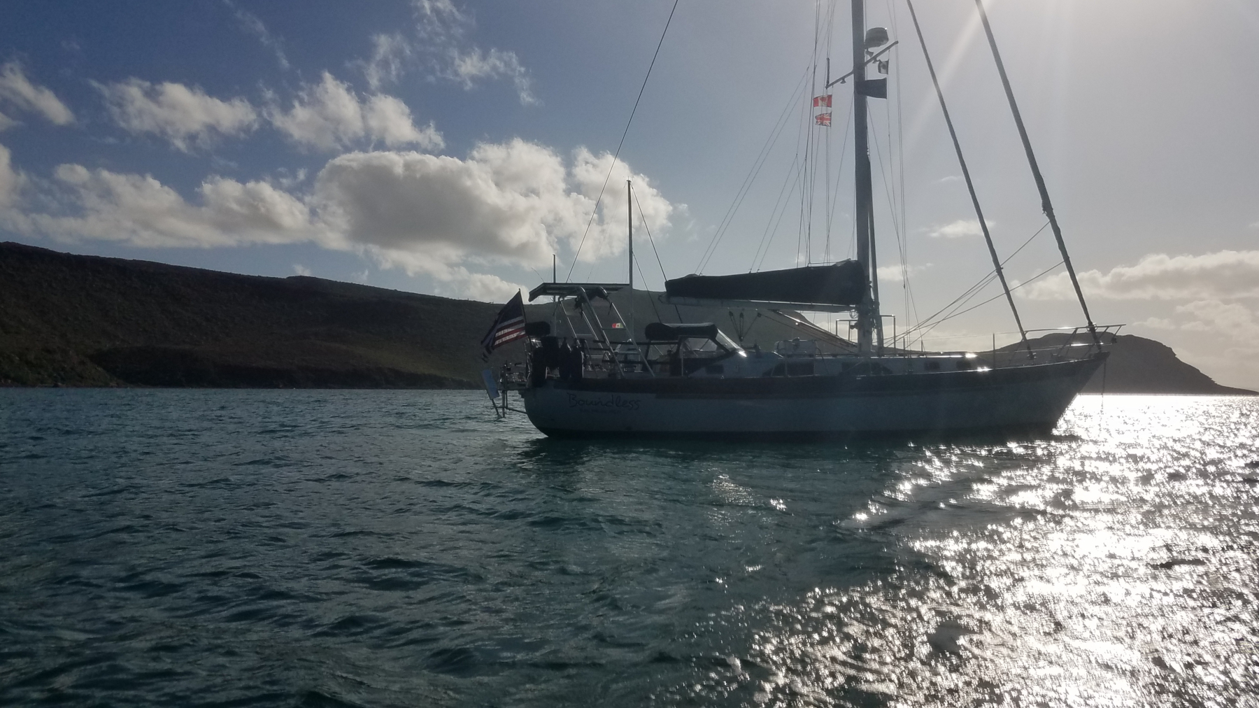 The anchorage filled up with many familiar boats – Galene, Pelucidar, Jersey Girl, and Deefoot II, as well as Absolute (Tom and Katie) and Kanamera (Doug) with whom we shared a hilarious evening in the cockpit of Boundless.