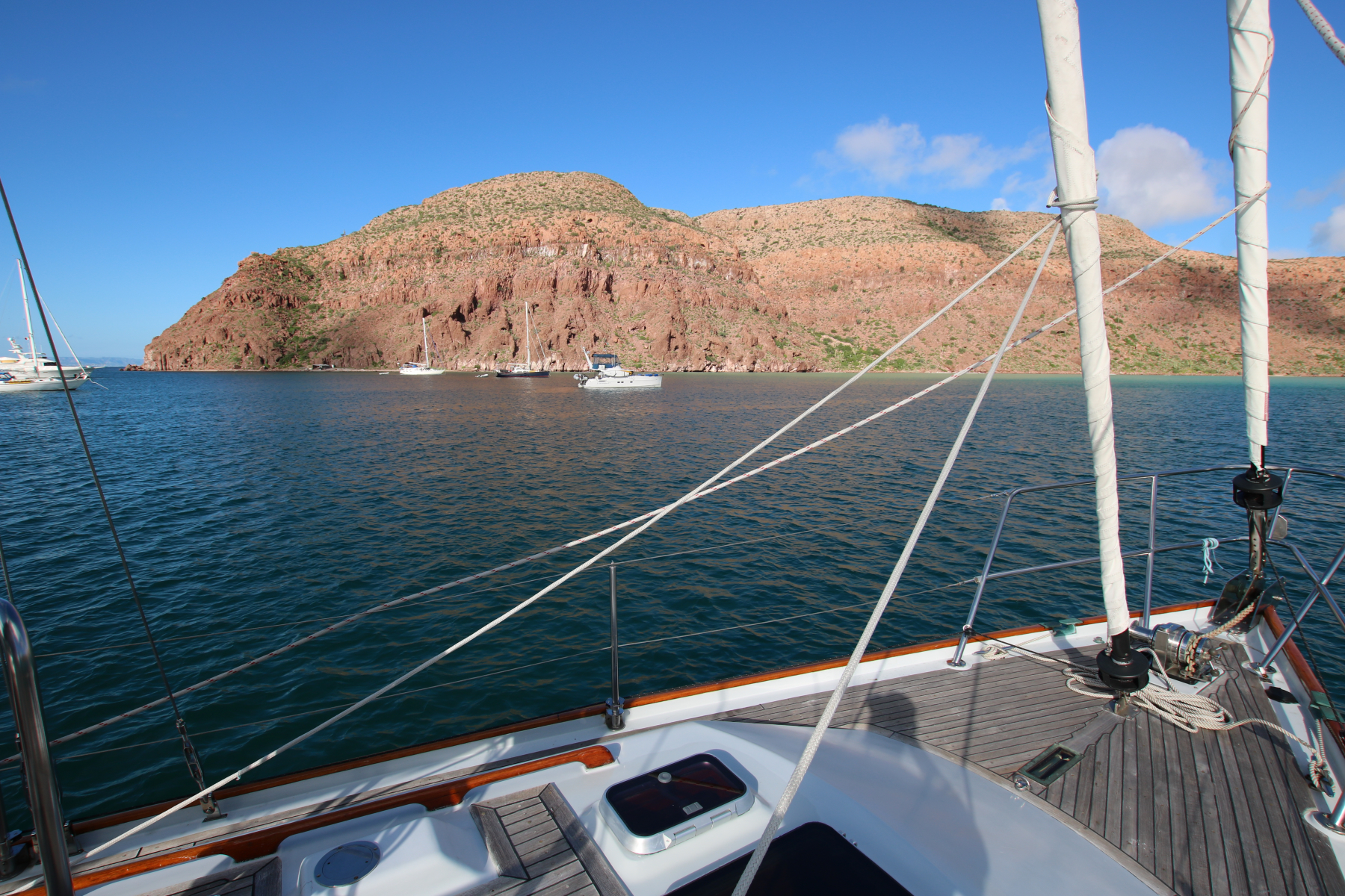 As we left the marina and realized the conditions provided for a beam reach heading north, and with the forecast for the wind to shift around providing a downwind return trip, the decision to head up to Caleta Partida was an easy one. The trip was one of the best sails to date, all three sails flying and the boat leaning gently into the 10-14 knots of warm breeze. The sail north permitted a peak into the sandy bays tucked into the dramatic landscape of Isla Espititu Santo, and the promise of many beautiful gunkholes for future trips.