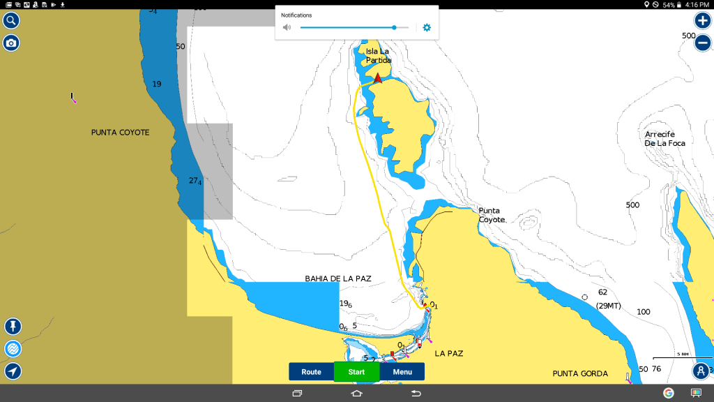 With Colin having returned from a couple of days back at work, and enjoying the Club Cruceros Thanksgiving pot luck (and drinks after) the day before, we were keen to get out and see some of the local anchoring spots. The initial plan was to just go to Ballandra Bay, but peer pressure (Kanamera and Absolute) encouraged a slightly more ambitious destination – Caleta Partida; a cut between Isla Espiritu Santo and Isla Partida.
