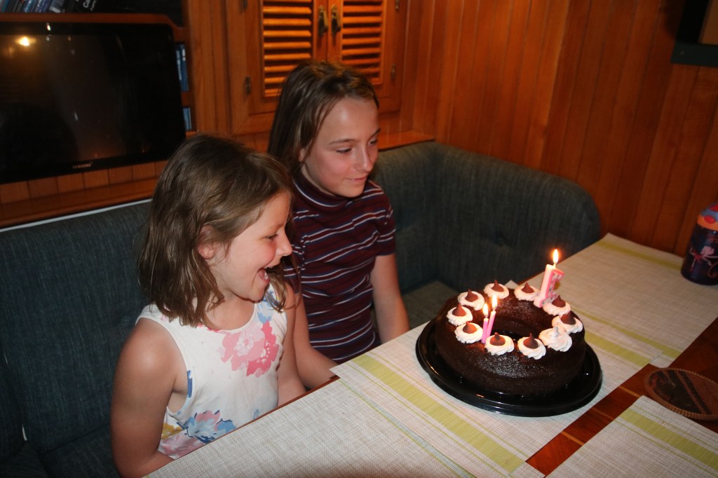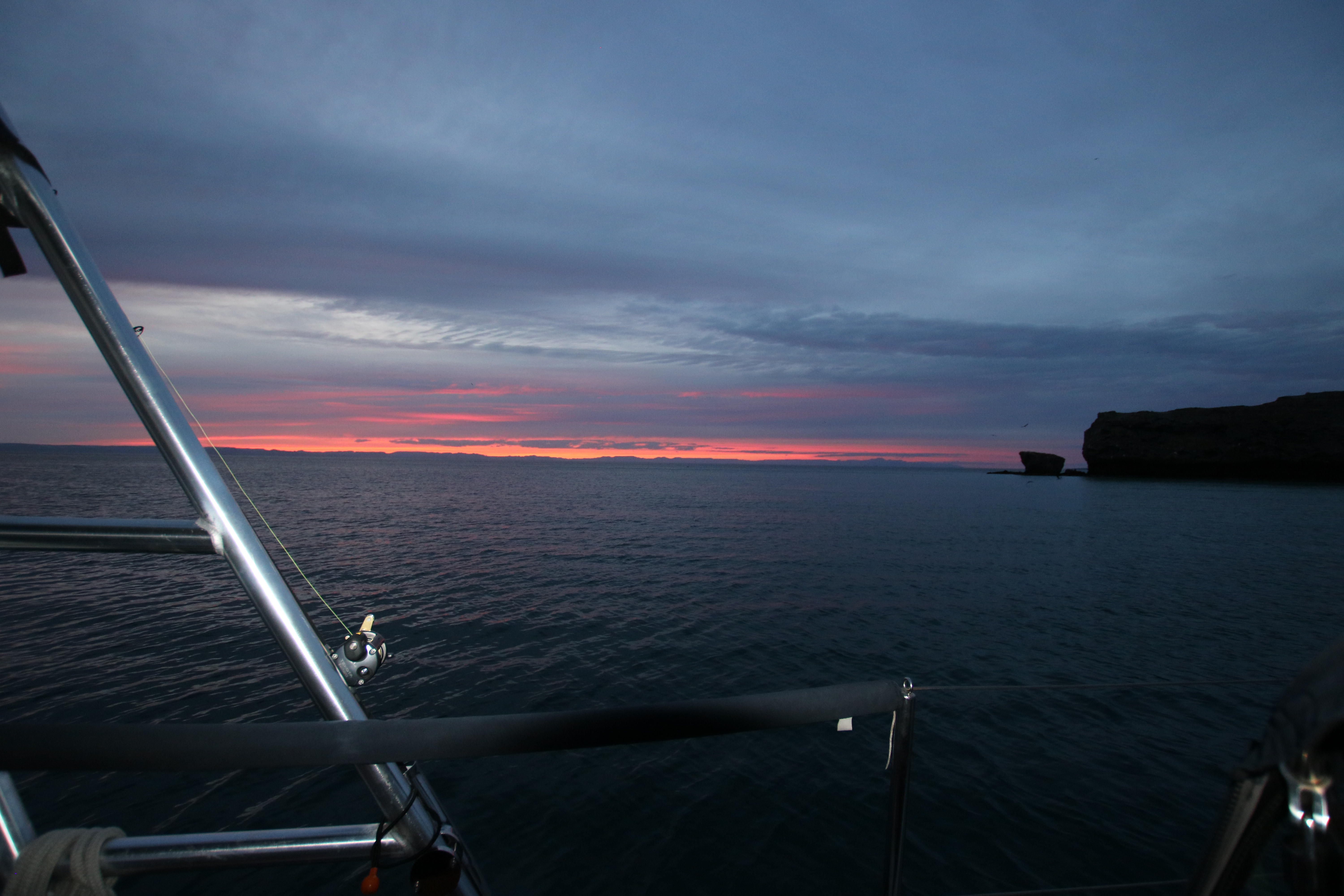 Tuesday 1/7: With the norther looking like it was going to die down later in the day, we headed out of the Marina in the afternoon, looking to get to a comfortable overnight spot. Initially putting into Balandra, it was clear that there was still a good swell that could make for a rolly evening, so we headed to the bay just further south, Caleta Lobo, dropping the anchor just in time to enjoy the sunset. A great spot for Maddie’s twelfth BIRTHDAY!