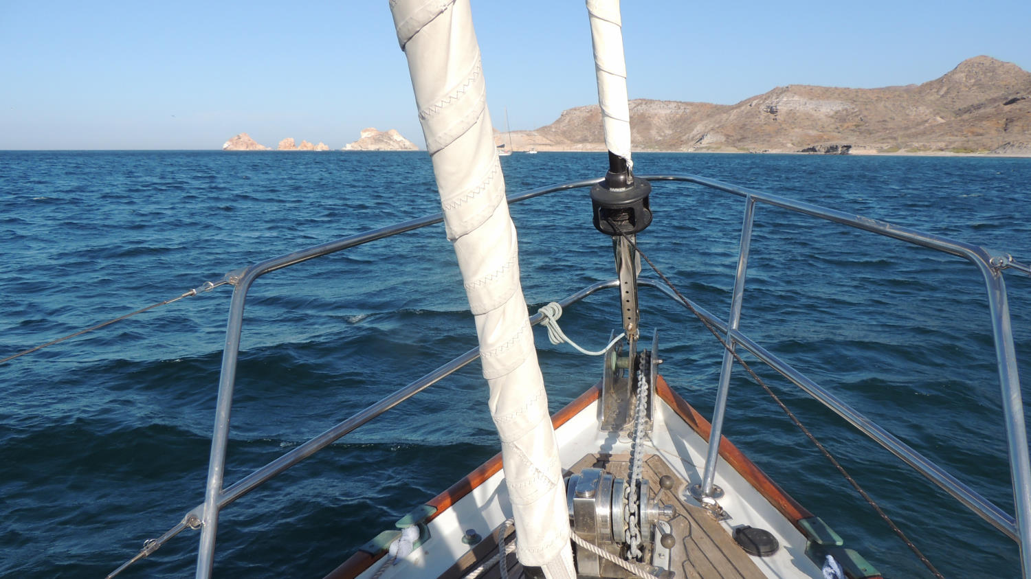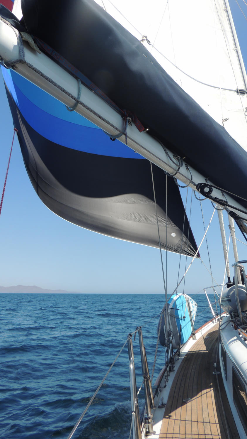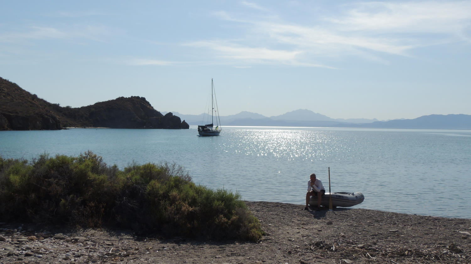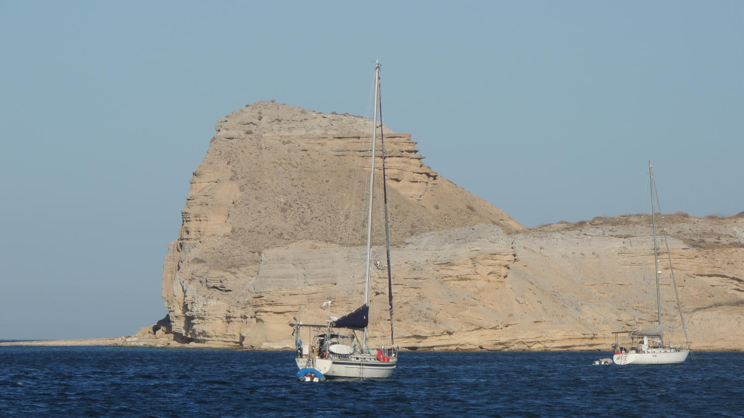 The wind was fairly light, but we managed to sail about half the way, taking advantage of a favourable SOG despite the low boat speed. Motored into pretty Puerto Balandra, and the only boat there. Colin enjoyed the bay on the SUP, and we went for a walk on the beach, and the rocks connecting the sections of (not perfect) sand. Bees! A warm night, and Julian spent the night on the foredeck.