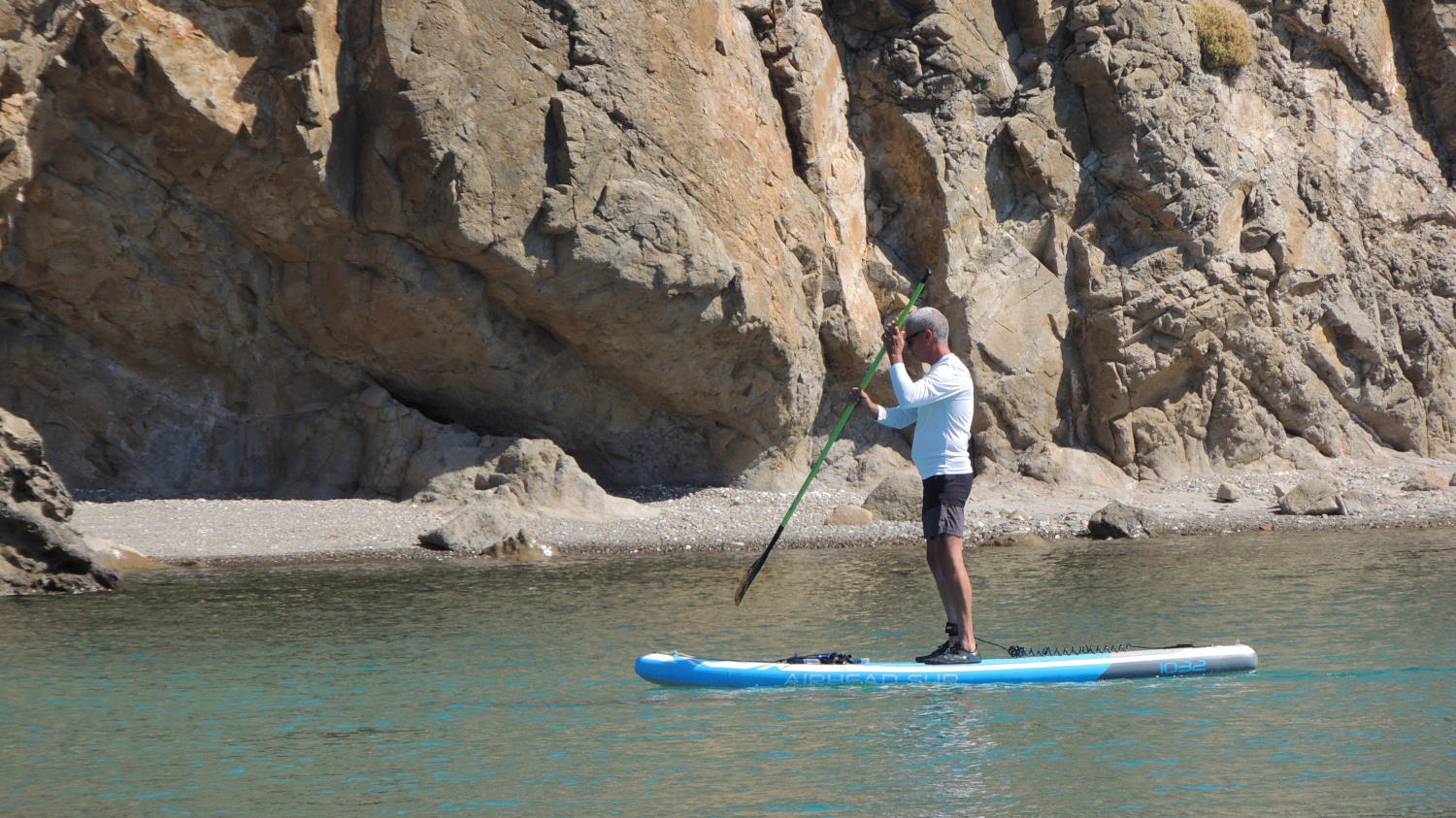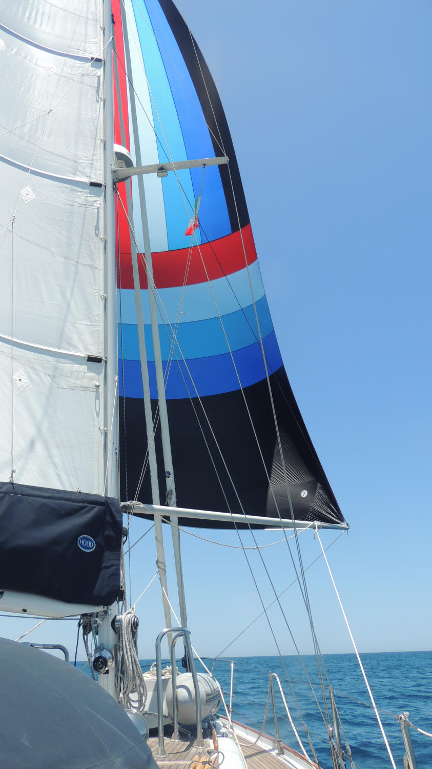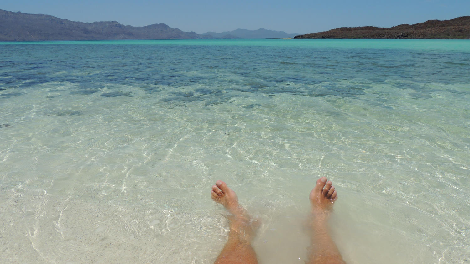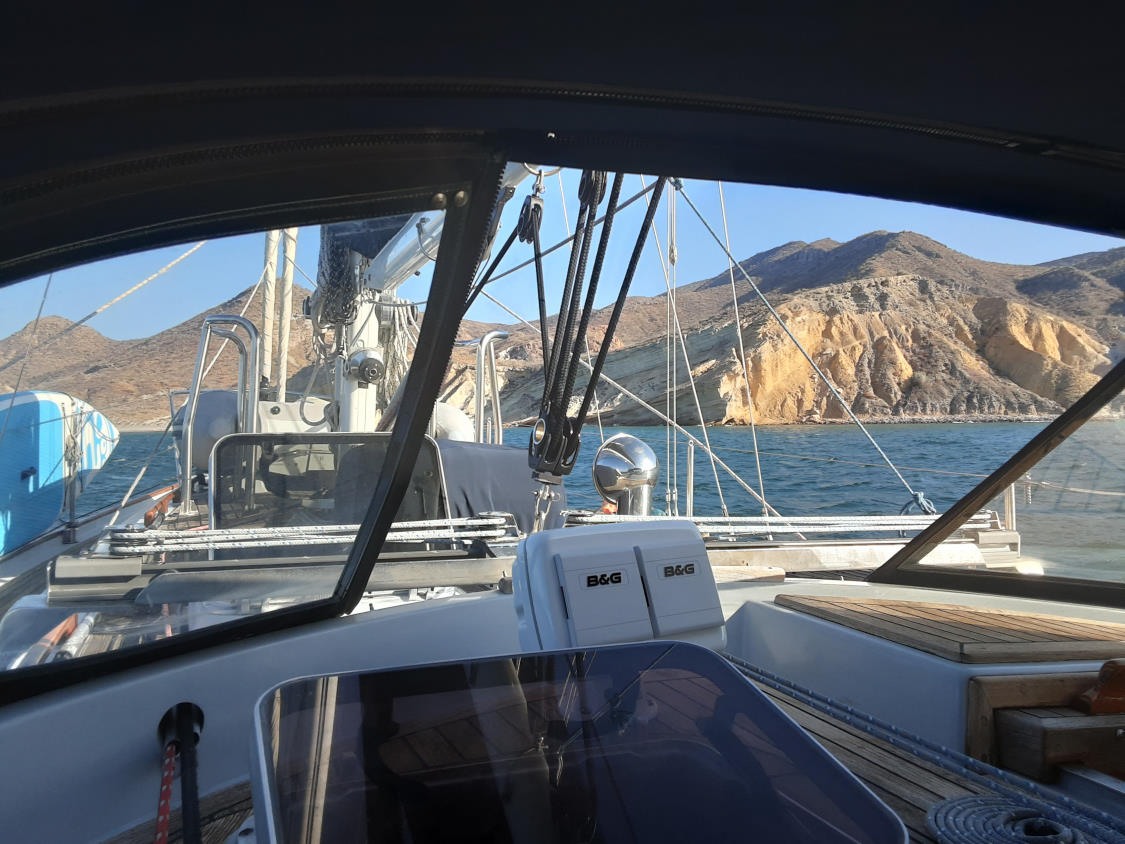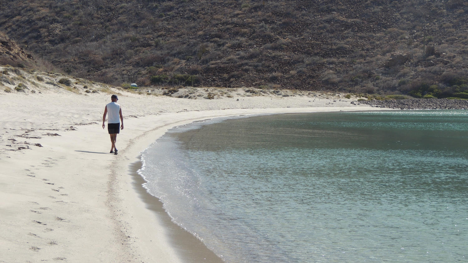 The wind was fairly light, but we managed to sail about half the way, taking advantage of a favourable SOG despite the low boat speed. Motored into pretty Puerto Balandra, and the only boat there. Colin enjoyed the bay on the SUP, and we went for a walk on the beach, and the rocks connecting the sections of (not perfect) sand. Bees! A warm night, and Julian spent the night on the foredeck.