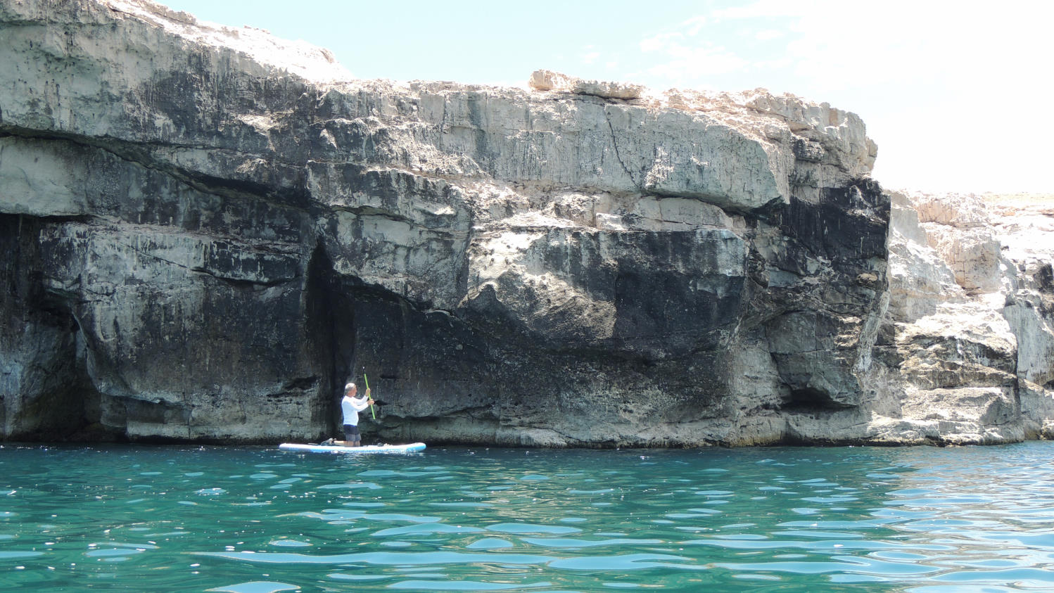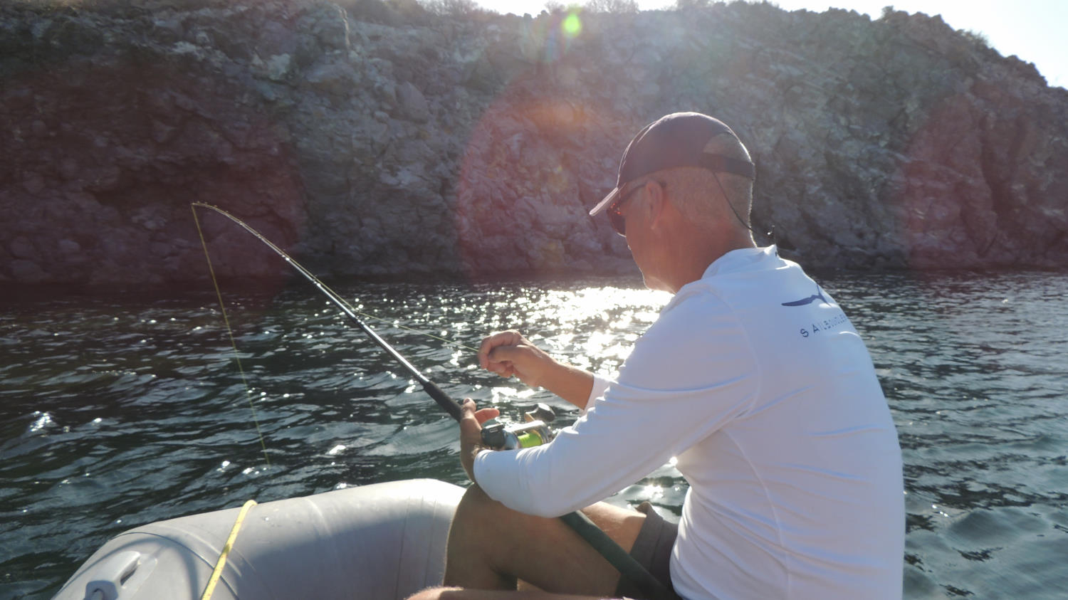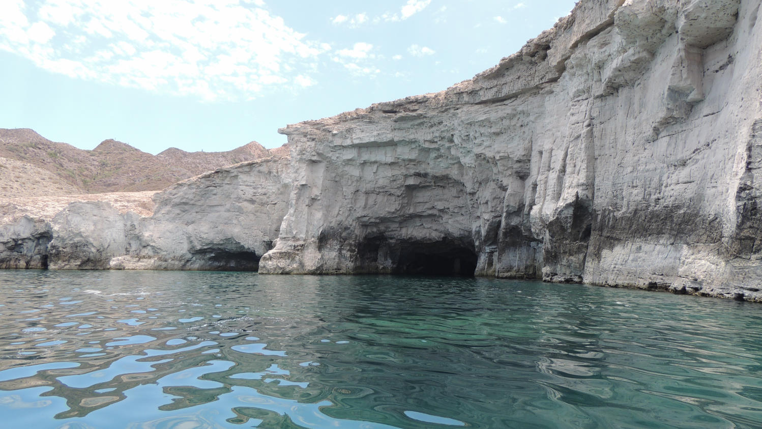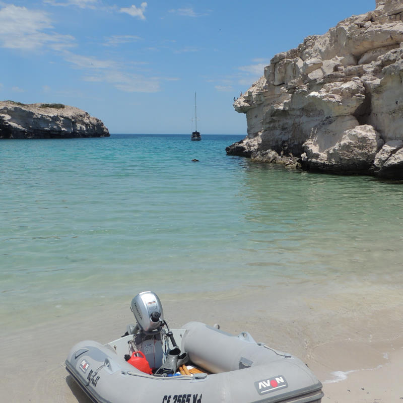 We left early to avoid the bees, but ended up motoring in light air. Despite the reports of going over a shelf and easy Dorado fishing in the summer, we caught nothing!. It was a spectacular arrival into El Refugio with the cliff sides to the small bay, sea caves, a few pangas coming and going, and a pod of dolphins arriving soon after we anchored. Colin headed off on the SUP and had the dolphins around him. We did a great tour of the surrounding cliffs by boat, and walked on the beach. While we were securely anchored the wind got up in the evening and with the boat only a couple of boat lengths away from the surrounding cliff edges, it was unfortunately a nervous night, but a truly spectacular location. Certainly one of our favorites to date.