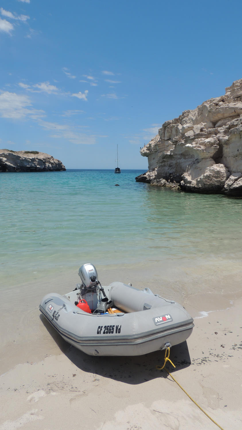 This was a quick 3nm motor around the point and into the La Ramada cove, but we were extremely pleasantly surprised. The bay is well protected, has two perfect white sand beaches, and a rocky side that looked perfect for a bit of fishing. Colin explored in the SUP, we went to the beach and then decided to try fishing from the dinghy along the rocky shelf. Unfortunately, the only thing we caught was a pelican (Yikes!), but after we had half dragged it, half motored towards it, Colin managed to grab its beak and extract the hook from its leathery bill. It was interesting seeing the bird so close, and I have to admit to be getting quite an appreciation for pelicans, with their dive bombing the water, and gentle gliding just inches over the surface of the water.