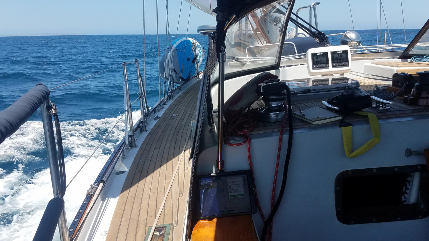 Brisk south, south easterly winds made for a great day of sailing as we continued our trip north. We reviewed the charts and decided to go around Isla San Marcos instead of through the straights due to the wind and possible currents and reefs. This meant a great sail with big rolling waves, surfing one minute and taking water over the beam the next, but clear blue skies, sun and warmth make even the most challenging sailing conditions more tolerable. We saw a few large turtles swimming past the boat and large Manta Rays jumping out of the water.