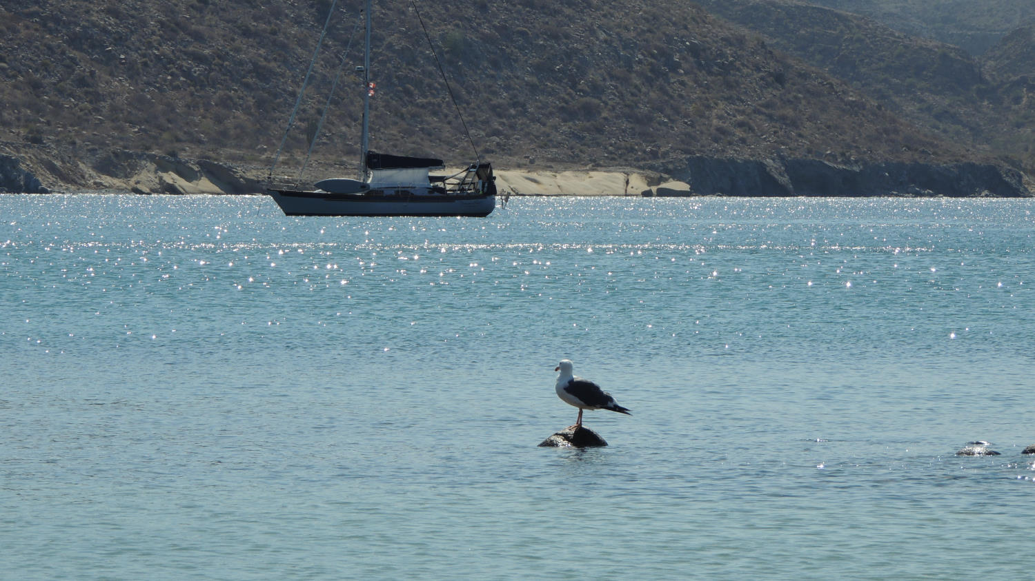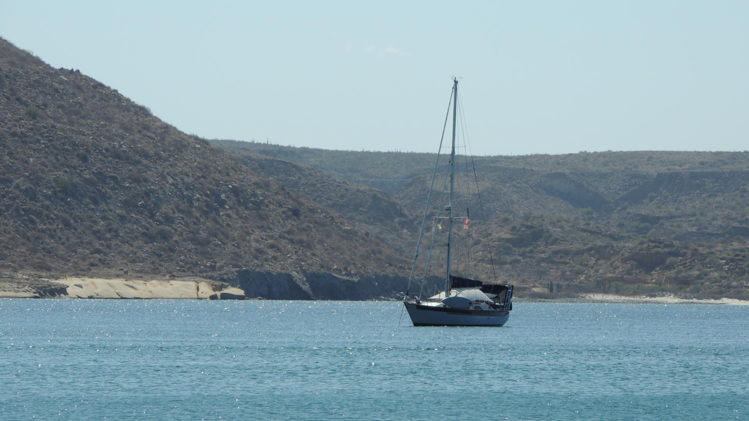 A quick motor, with jib, and making water, we made our way around Punta de Los Animas, we saw an interesting boat in the first of the two ‘East Anchorages’ – it turned out to be TAIKO – and pulled into the second. We were later joined bu CAVU in the anchorage, and enjoyed a few dingy/paddleboard chats with Dave and Marla during the few days we spent there, and Dave passed on a heap of great weather resources, movies, and tips. With some reasonable protection from the healthy southerlies, this was a very pleasant place to spend a few days, and there was a good walk from the beach onto the bluffs overlooking the bay and down to the valley. A few dinghy excursions were had, and snorkeling enjoyed.