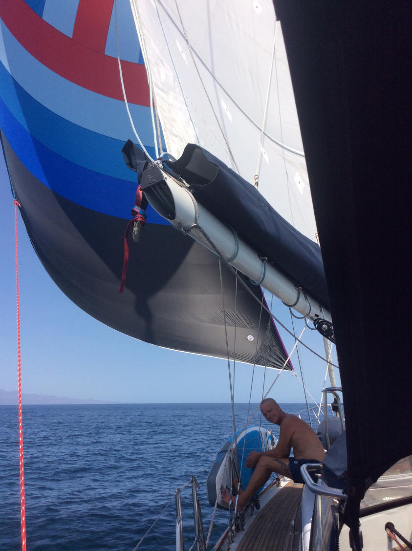 Purely by chance, we perfectly timed the current for the trip to Los Animas enjoying a 1+ knot advantage most of the way, and almost perfect sailing conditions for a good part of the journey with the spinnaker up, until the wind died. As we approached Punta del Los Animas, however, we hit a wind acceleration zone and tidal action and pulled into Enmedio in favor of the more popular, but tighter, Animas Slot. Enmedio is pretty, and fairly desolate, but the swell found its way in, and it was a bit rolly, and gusty throughout the night and we woke to the boat tripping over the snubber lines as the current swirled around the little bay opposing the wind – time to go!