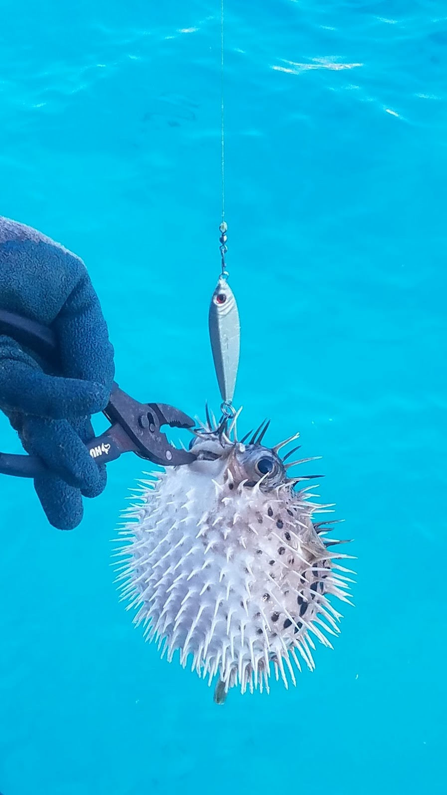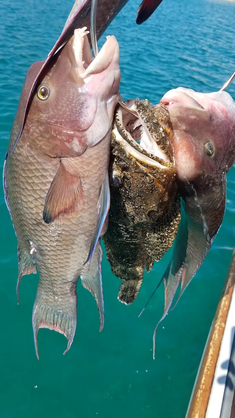 Julian finally discovered that his spear gun did indeed work (until this point, it seemed subject to a defect preventing the spear from hitting anything) and with Heather’s help, he bought home two Mexican hogfish, and a Sculpin (California Scorpionfish). The sculpin has poisonous spines that can inflict a painful sting, but an “I’ll deal with it if you shoot it” encouragement from Heather led to the Sculpin’s demise, which was then followed by him coughing up a whole octopus while being put on the stringer. A strange, but very tasty creature, however, I do not think we’ll be looking to catch these on a regular basis.