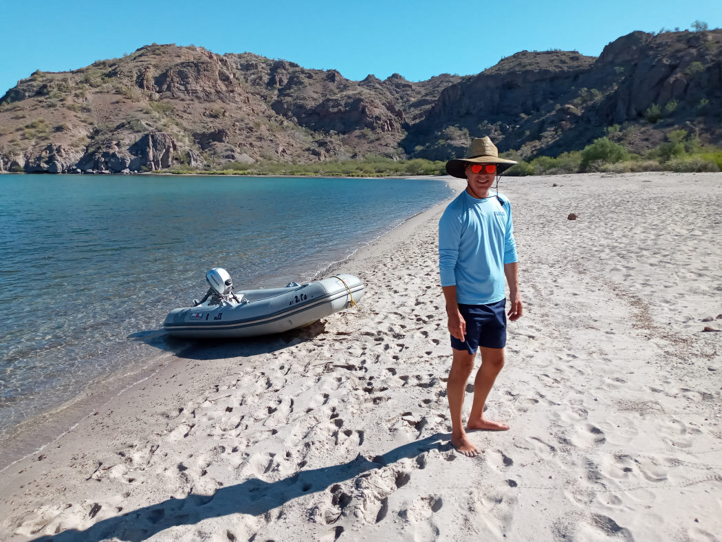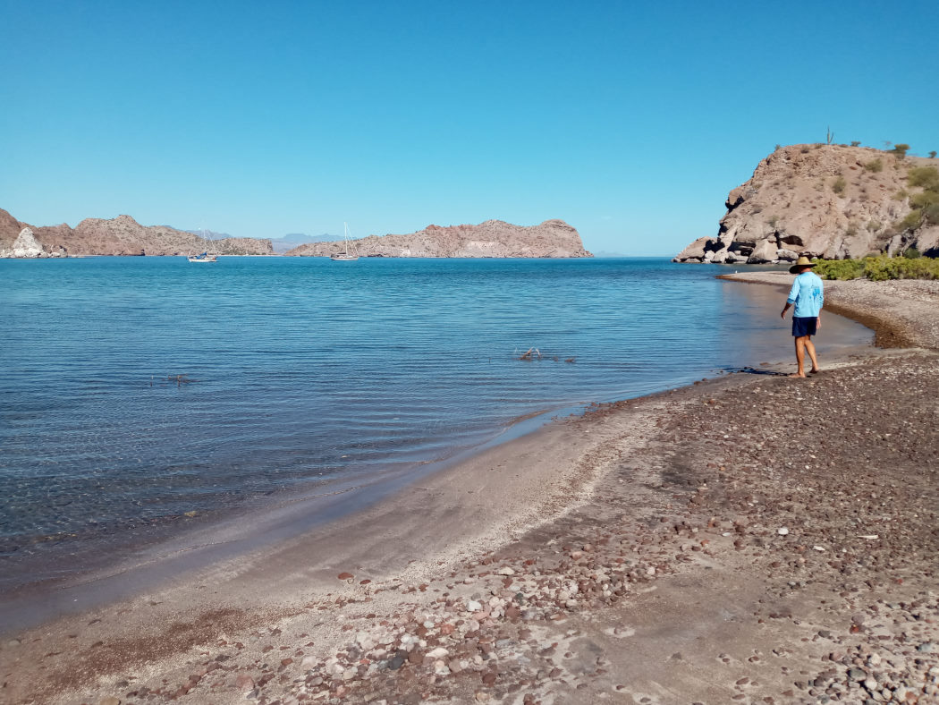 Caleta Partida is a stunning place to enter and there were fewer boats than we thought would be there, based on our experience at Isla San Francisco. We took a walk on the strange muddy (north) beach at low tide, and seeing high tide the next morning took the dinghy through the gap that separates Isla Espíritu Santo from Isla Partida, stopping on the way back at the immaculate sandy (east) beach where the fishing camp sits.