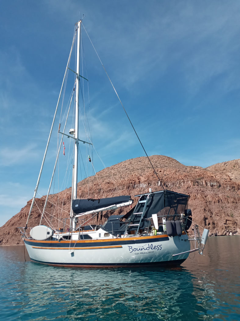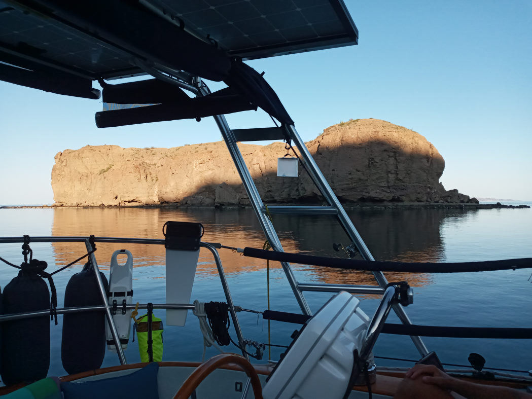We enjoyed a fresh fish dinner with Baron and Heather as Baron had caught a good sized snapper, and we shared the bay with a fellow we met in Puerto Escondido (on his Macgregor 65 – MAMAKA) who had fashioned quite the electric boat out of a NOLA dory, and was travelling quite some distances just on the power of the sun.