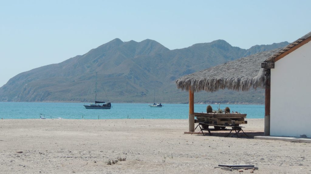 Some strong north wind had been forecast so, arriving first, we tucked up into the north part of San Evaristo under some cliffs, and felt well protected. We were joined by San Souci, and then two more boats, and there we sat for a couple of days while the windy front moved through.