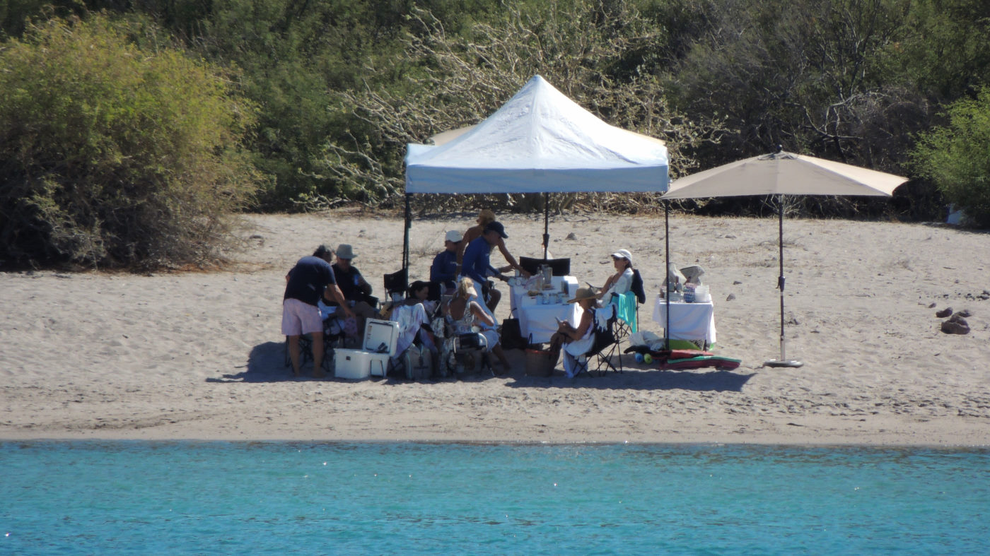 A day of mostly motoring in little wind while running the water maker, we made our way between some big motor yachts to anchor in front of San Souci. We always marvel at the contrast in lifestyles of those Mexicans with incredible wealth, and those with nothing, and this again was so evident in Agua Verde, where we were witness to pampering of the wealthy, with onshore picnics staged by crew, and endless trips to and from the yacht where they were no doubt collecting an essential sauce or forgotten hat, All while against the backdrop of a rural fishing settlement with little more than basic shelters for homes.