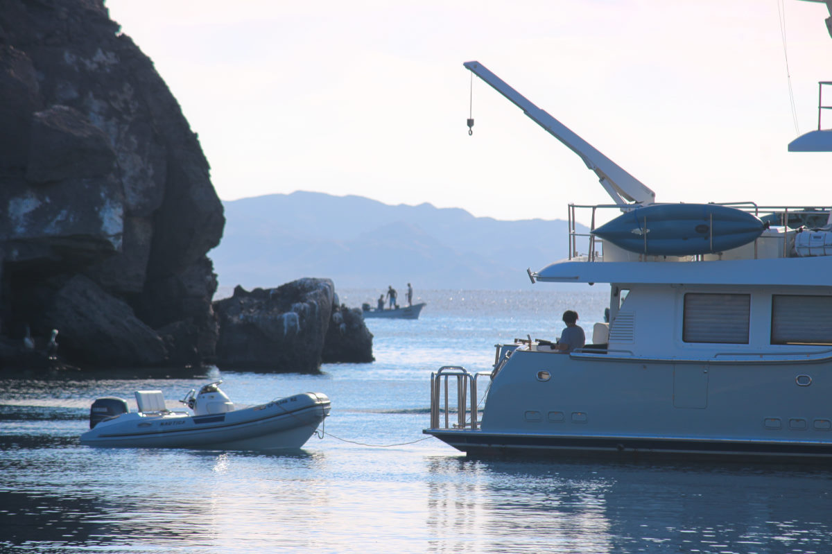 With light wind we motored the short distance to Candeleros Chico, and deployed our stern anchor arrangement once again. We enjoyed some great snorkeling and, now being outside of the restricted park that we had been in since Isla Coronados, we could once again try a hand at spear fishing. We were, however, less productive that the panga that came in to process quite the catch of (primarily) manta rays.