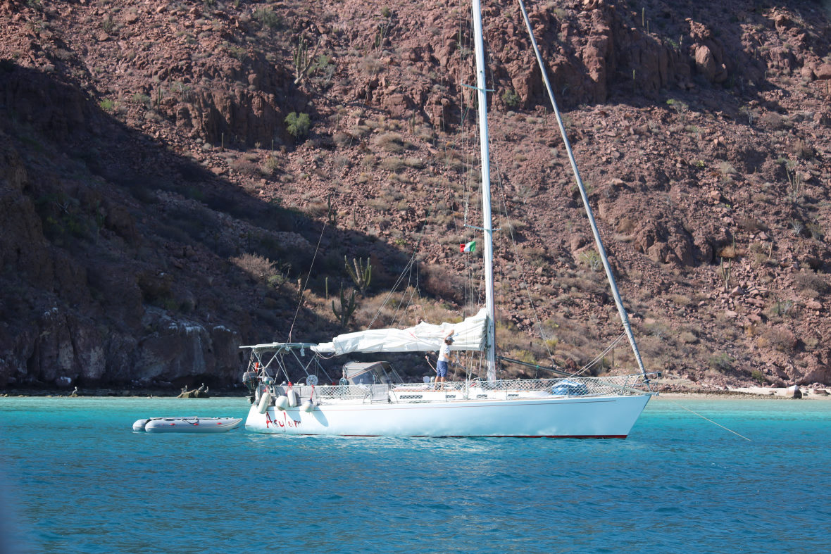It was a strange feeling to be heading back to mainland Baja, getting close to La Paz, but the sailing was excellent, and we really enjoyed the few hours, sailing right into Bahía Falsa and only putting the engine on to anchor. Bahía Falsa is adjacent to the Pichilingue ferry terminal and it was a stark reminder to see the large boats coming and going.