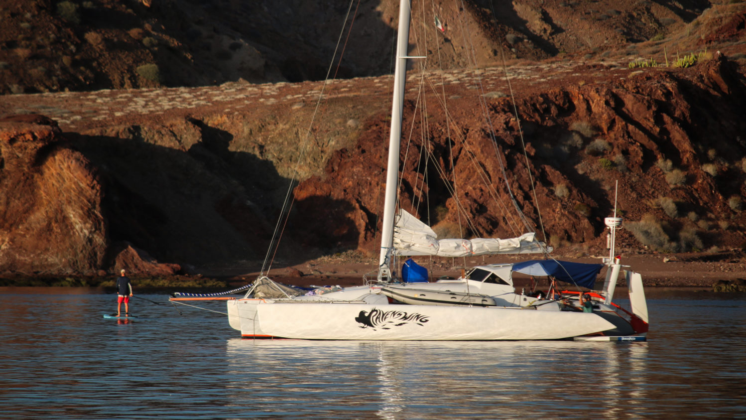 We were joined on the second day by RAVENSWING, with Greg and his son Colin (from Novato) on board. They were one of the fastest boats in the Baja Haha, and the trimaran appeared very quickly in the anchorage, despite the light wind, and left just as quickly a couple of days later.