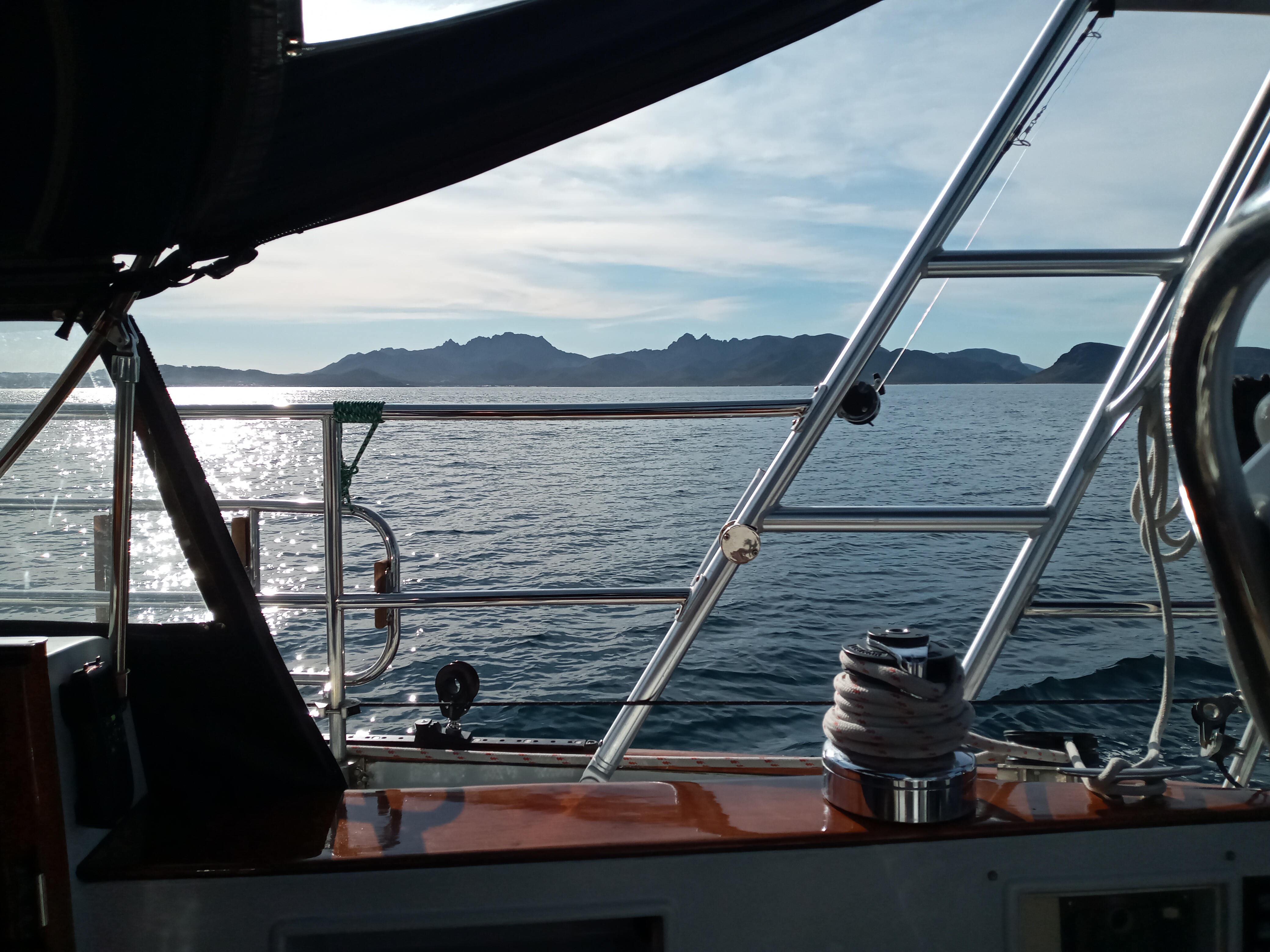 The wind was light as we left, and it felt strange to take a right hand turn and go through the gap between Isla Partida and Balandra that we were so pleased to arrive at over a year before. We were looking forward to the different climate and scenery of the mainland coast, but had chosen to make a couple of stops on the Baja Peninsula first, to reduce the crossing to the mainland to just one overnight.