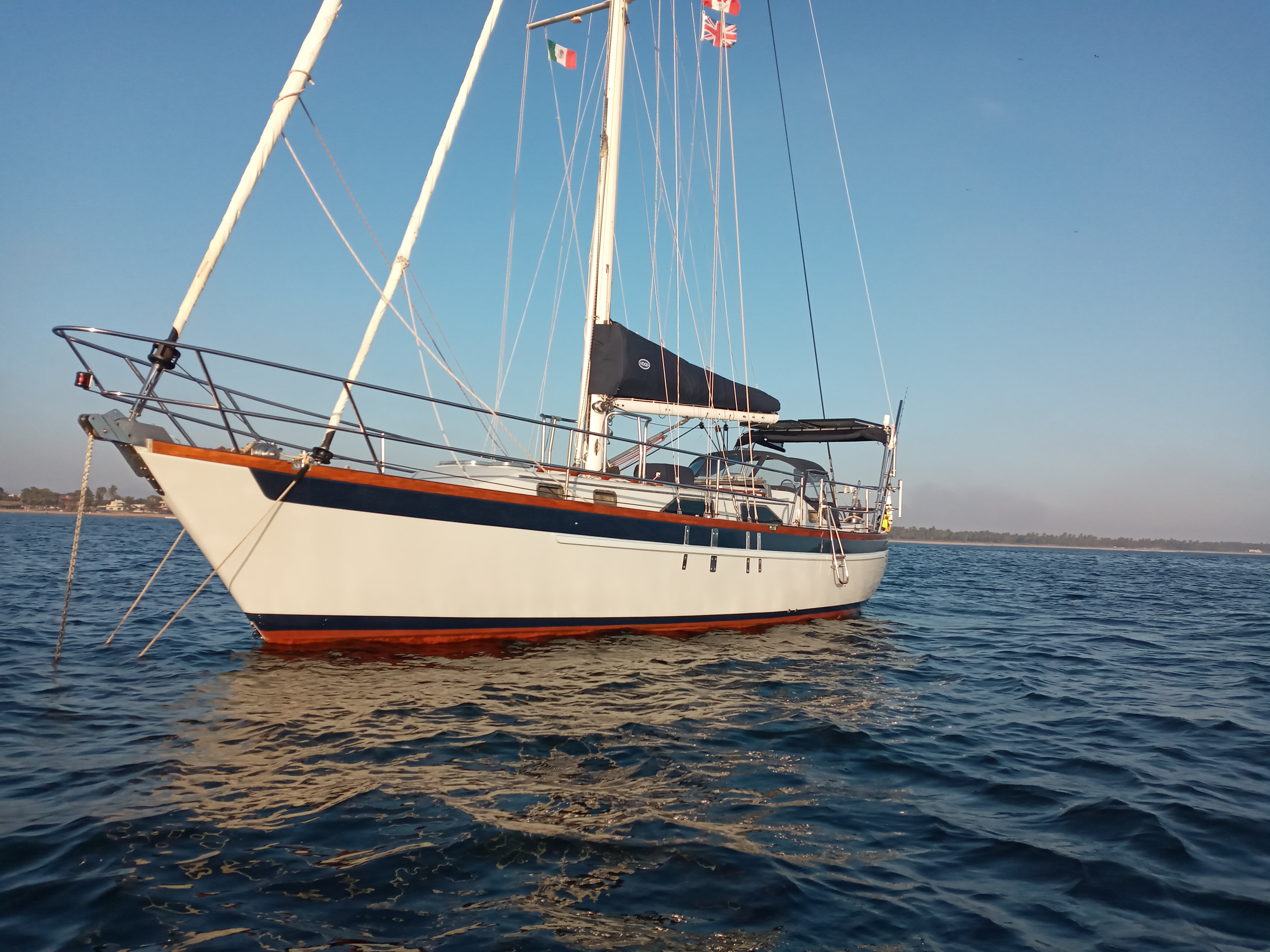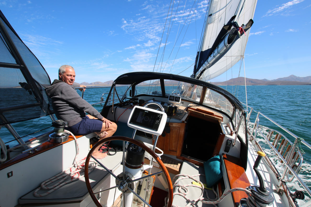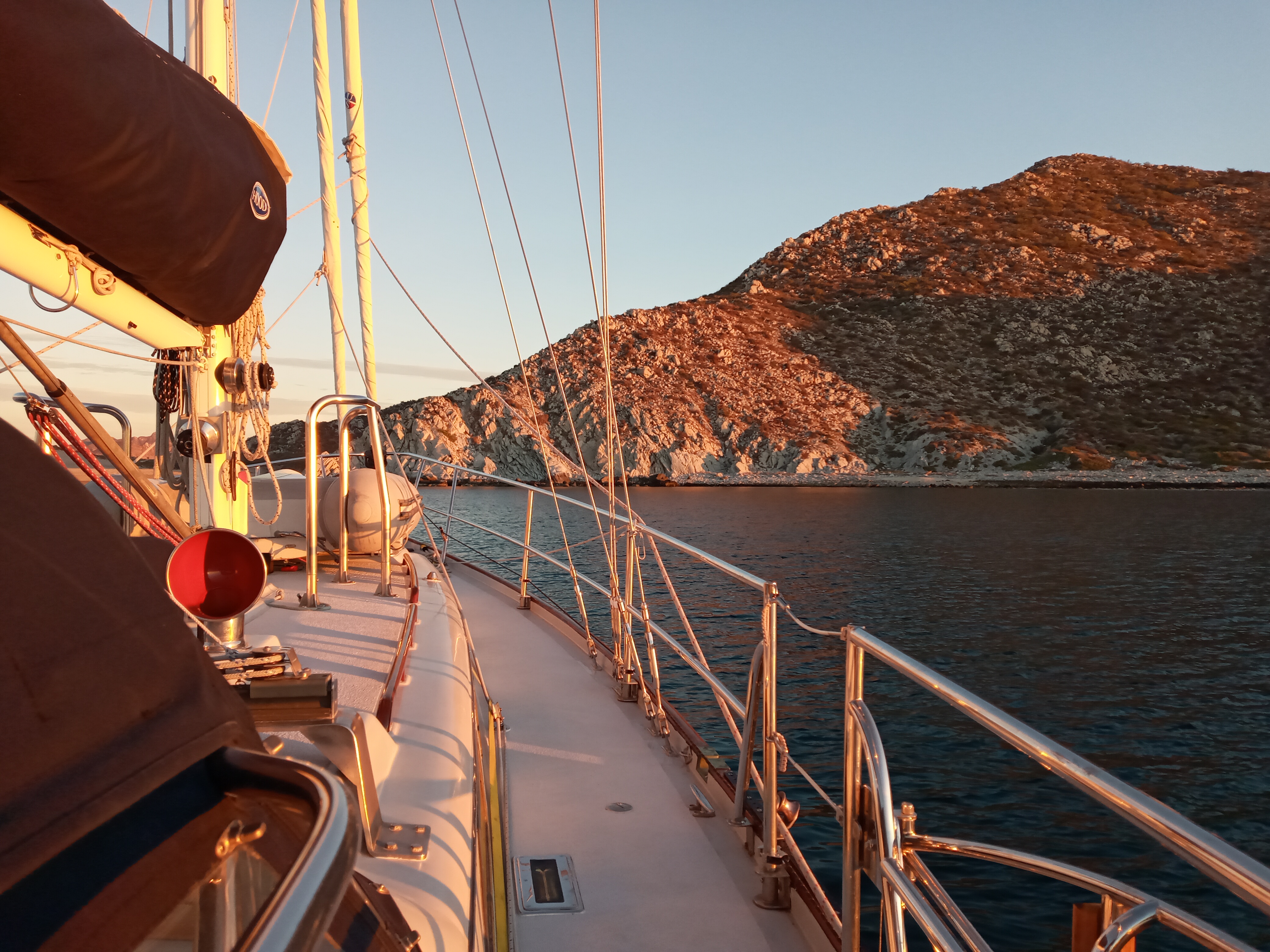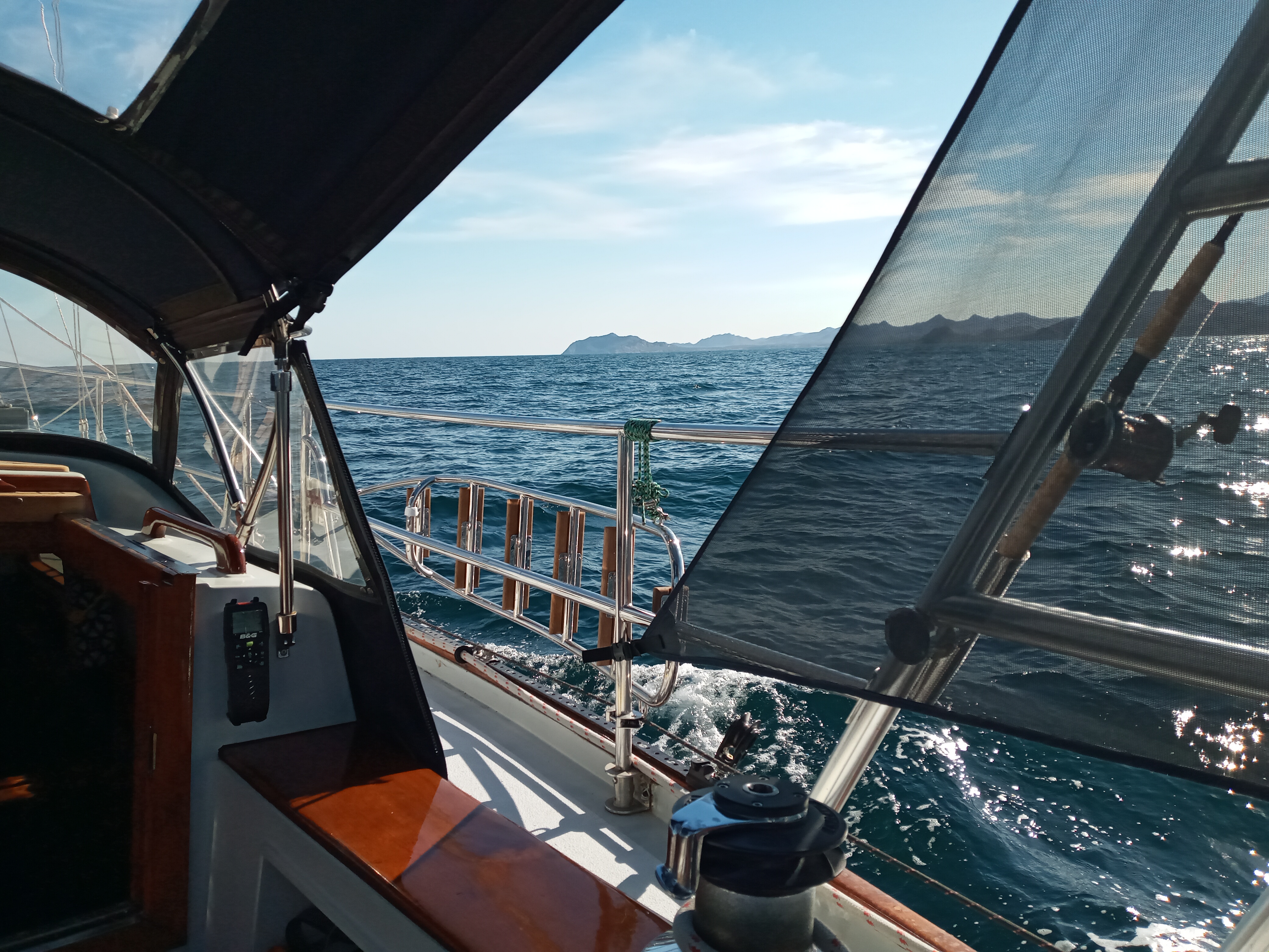 We left Frailes with light wind, and after a few hours the wind filled in as predicted. We enjoyed over 20 hours of very pleasant sailing, with the Monitor wind vane operating just about the whole time. The sea state was a bit rolly, with wind and swell off the port quarter causing us to notice a slight noise from what appeared to be the rudder … time to think about getting those rudder bearings replaced (a job long on the list).