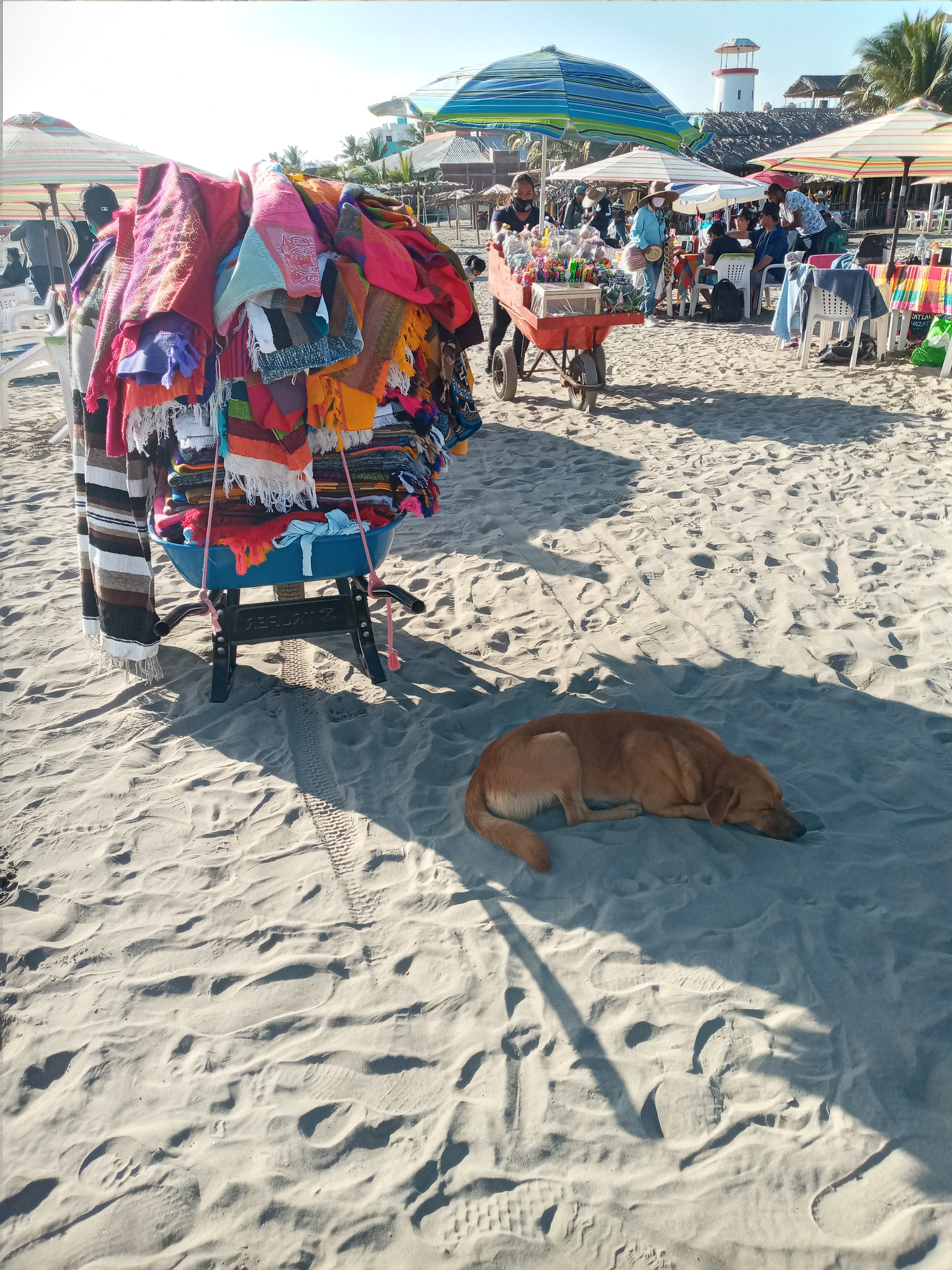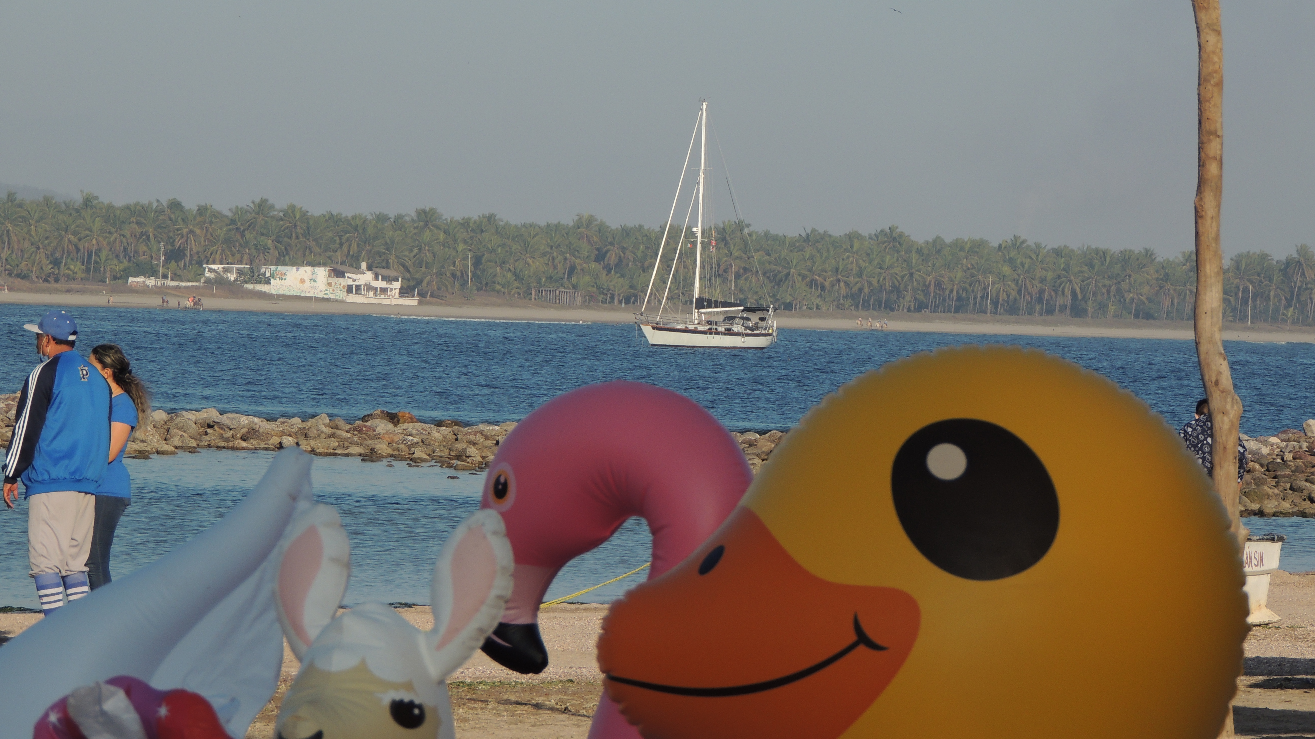 Very happy to have had a successful and pleasant crossing (after warnings of very rolly conditions from Bohemia, who had crossed before us), we pulled into the Isla Piedra anchorage, just off the beach, listening to a cacophony of Mariachi music from the many palapa restaurants on shore.