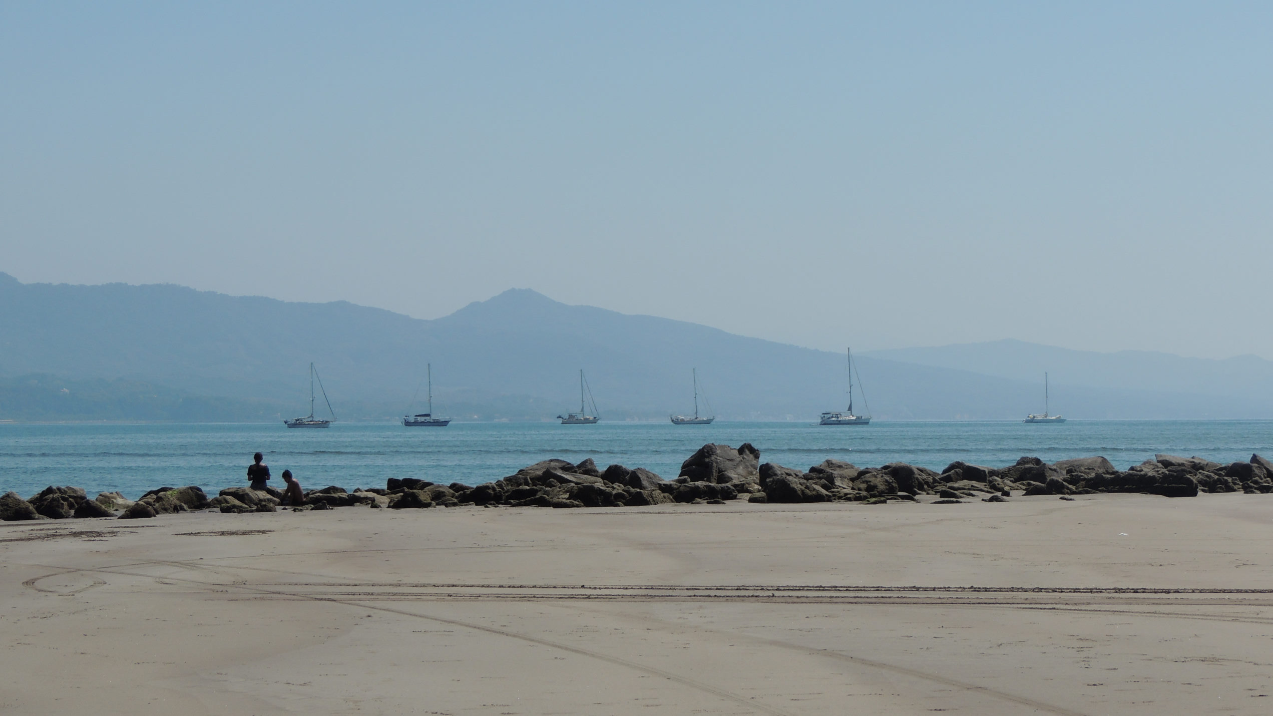 Tired, we were happy to enter the Bay of Matanchén, many palapa bars lining the beach and a few friendly boats at anchor, including Hajime, who we had met in Mazatlán.