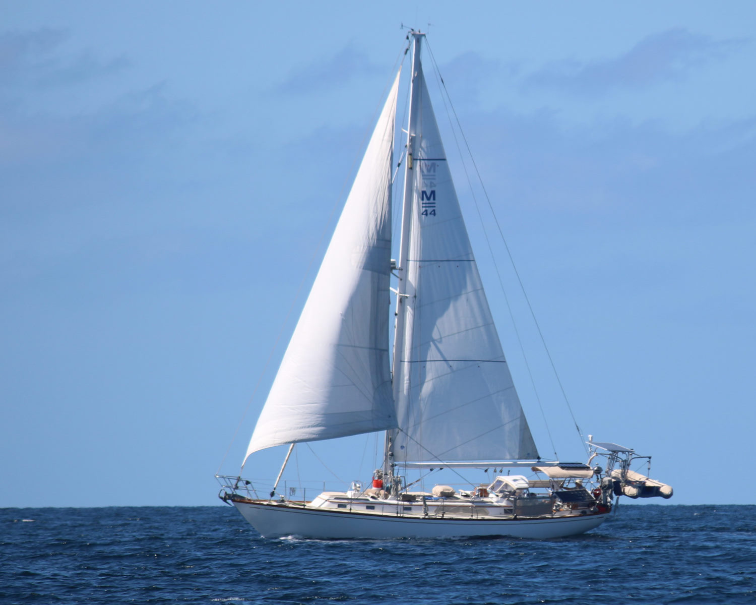 We headed out of the anchorage alongside Juliet with the overnight passage ahead. This turned out to be a fairly uncomfortable passage, and with just one night, neither of us felt like we got in the rhythm of the sail. The wind was not very cooperative and there was a good deal of motoring. With quite alot of ‘flogging’ of sails in the ‘some wind – no wind’ conditions, we noticed (once we arrived that one of the Batten Cars had broken … later repaired with a bit of JB Weld.