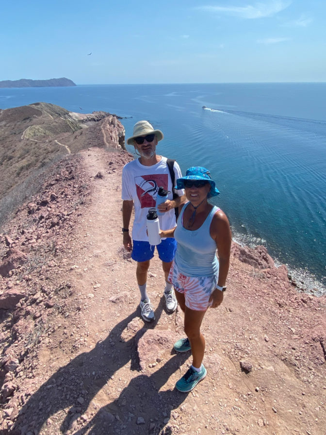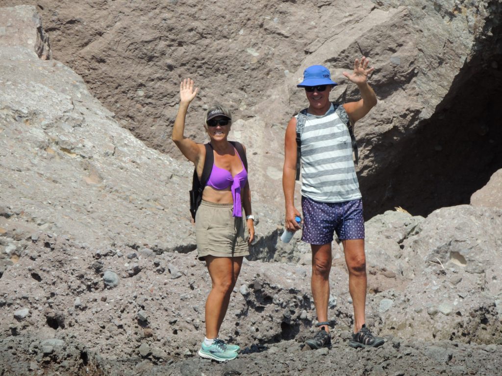 LeeAnne and Colin walking the rocks (rescued off the rocks in the dinghy)