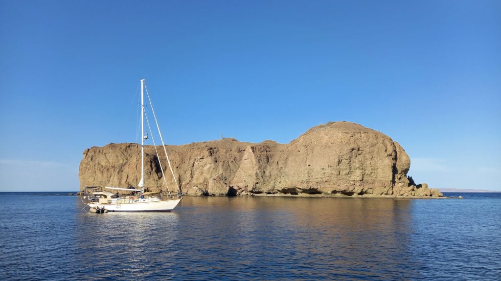 This boat was in San Evaristo when we arrived, but left before we had the chance to meet – Registered in Prague!