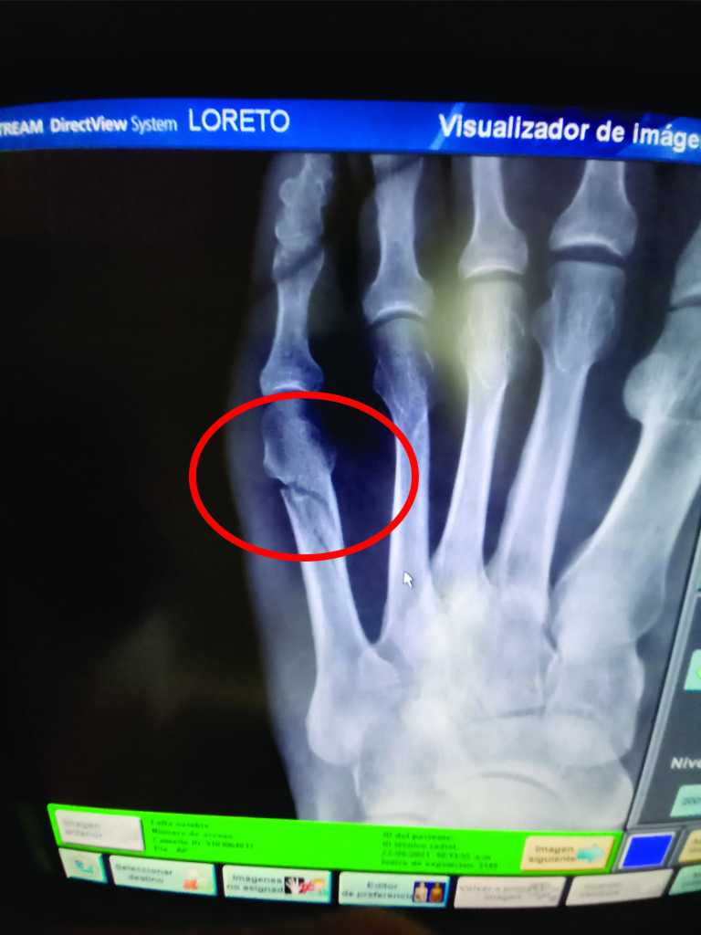 THE FOOT: The Wednesday after arriving, with no improvement to the foot, and having rented a car for us and Juliet to go to Loreto, we stopped by the hospital. A very short visit, 600 pesos and a diagnosis by the radiography tech and a security guard, and I was on my way with a photo of an x-ray on my phone.