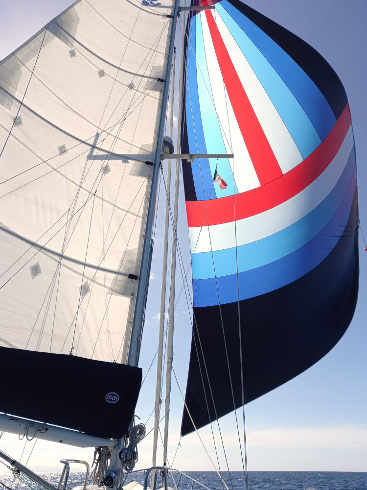 Taking advantage of the northerly winds we had a great sail with both a spinnaker run and then going dead downwind with the poled out jib, and made great time towards San Evaristo.