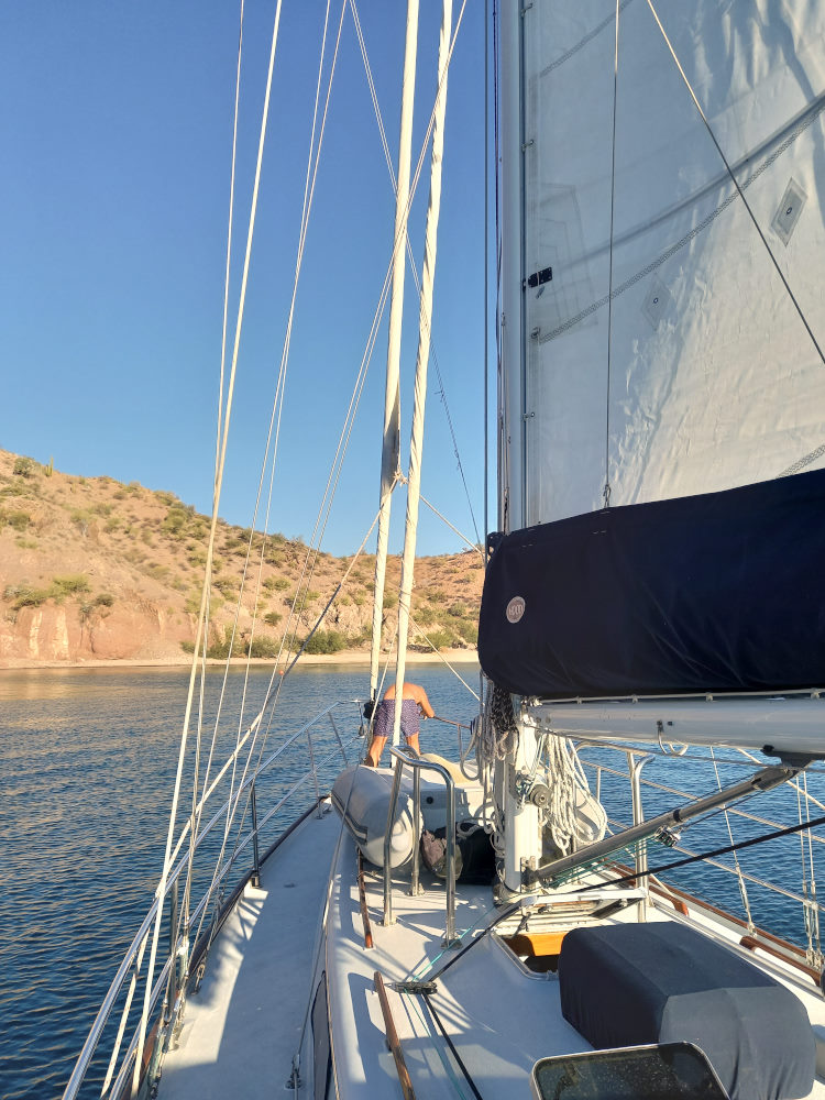 We had a good sail up to Balandra, with a reasonable wind on the port quarter, and headed into the north part of the Balandra, despite there being a bit of swell. It’s just a lunchtime hook after all, and its actually nice to feel the boat moving again.