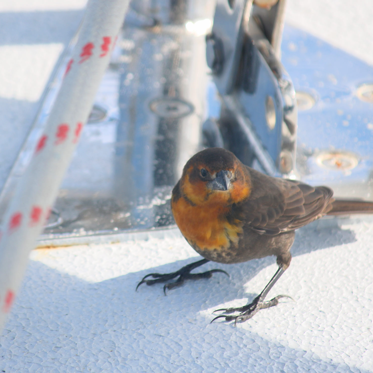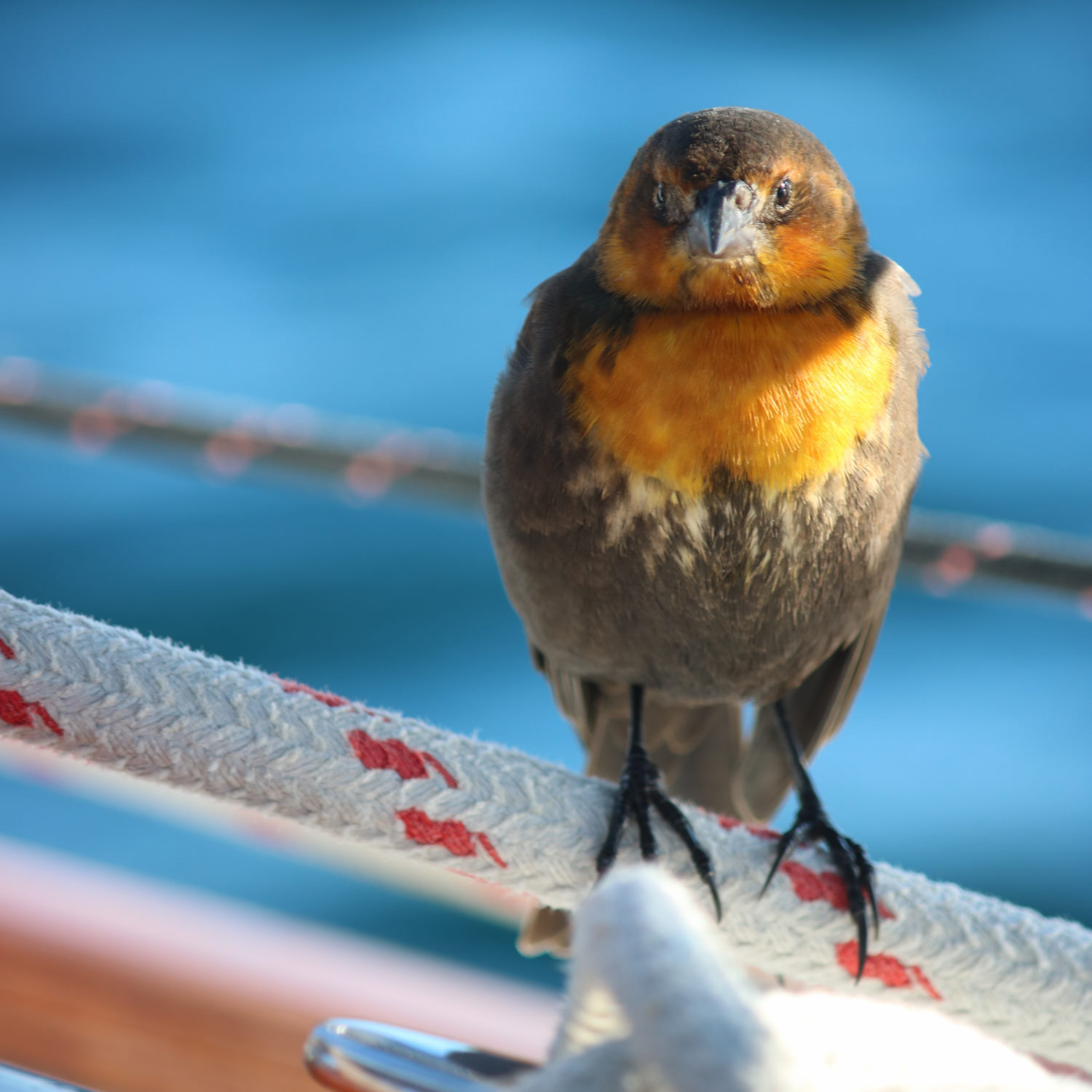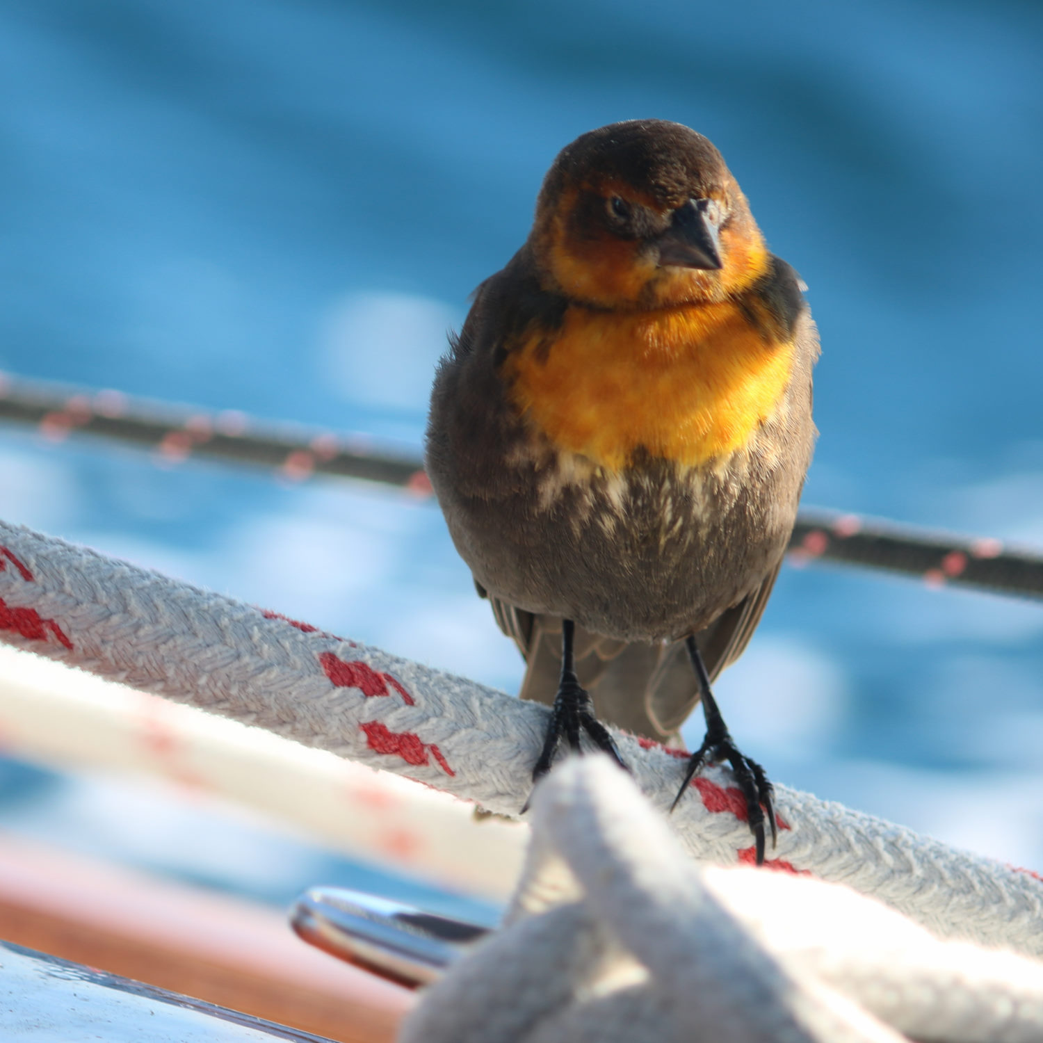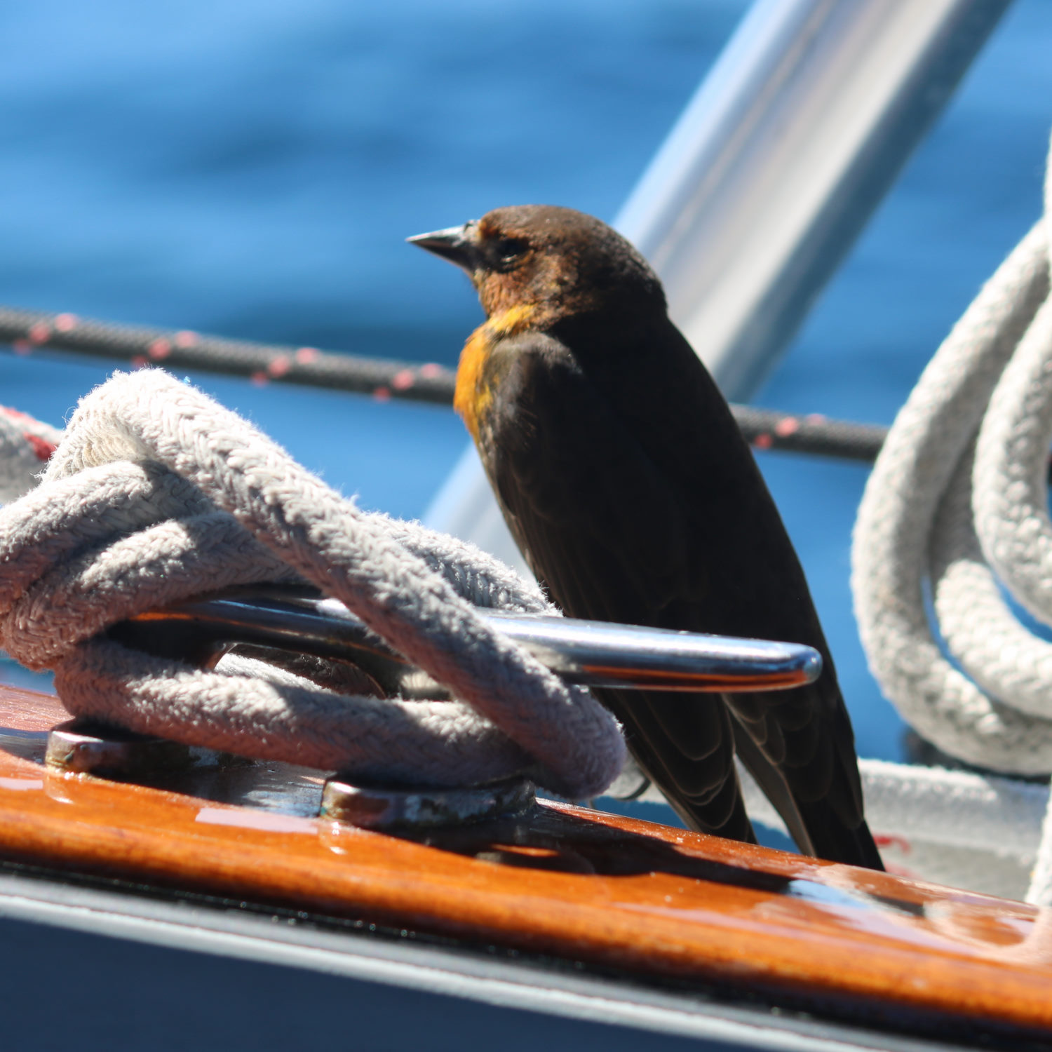 Lost for a few hours during the night, we assumed the bird was gone, but I heard Colin proclaim “Jack’s back!” as came on watch in the morning. The bird had apparently spent a few hours on top of the dodger (the evidence was clear).