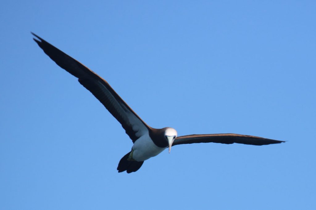 Jack stayed with us all of the second day, and was clearly quite happy to settle in for a second night perched on the aft cockpit bench, despite our now being in sight of the northern most of the Tres Marias Islands, however, around 11:00pm a Colin was startled by a large brown footed boobie landing in the cockpit and taking a position at the other end of the cockpit bench. The ensuing commotion scared both birds, as well as the human, and Jack flew off out of the cockpit along with the boobie.