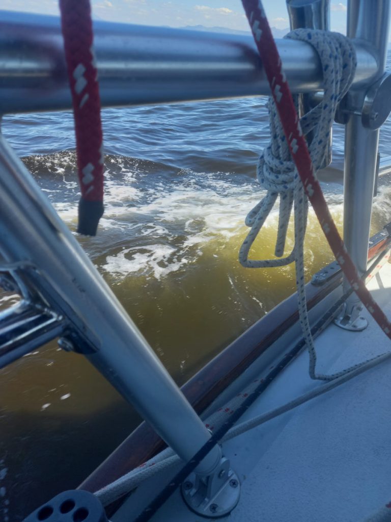 The last day along the coast of El Salvador saw us playing ‘Panga Ping-Pong’ … avoiding pangas and long lines, had us visited by dolphins in very clear water and later, saw us go through our first section of ‘red tide’, which had been reported to be a problem all the way down the Pacific coast to Panama.