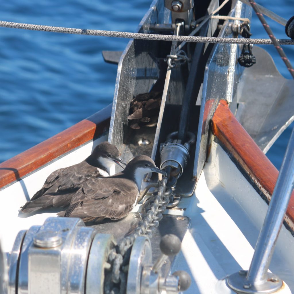 All day we were visited by small birds circling the boat and apparently trying to land on the deck, and after some hours, succeeding. They formed quite a colony on the bow, and later were planting themselves wherever they pleased, including the solar panels.