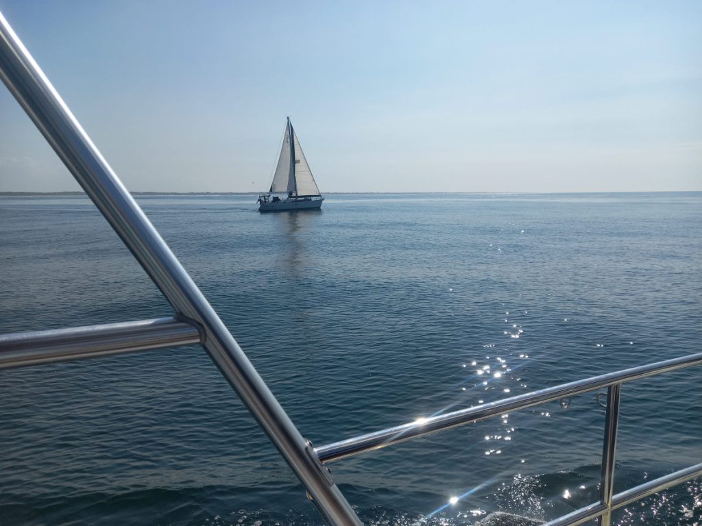 The following morning, we were visited by a selection of officials together with a sniffer dog, and then we were required to immediately set off. With quite the farewell group on the dock (Torben & Judy, TULUM, KYRIE) and Carole and Dominique from HIPPOS CAMP waving from their boat, we felt like we were embarking on an epic trip. We negotiated the channel that looked so different that when we had entered at night and headed out into the ocean swell.