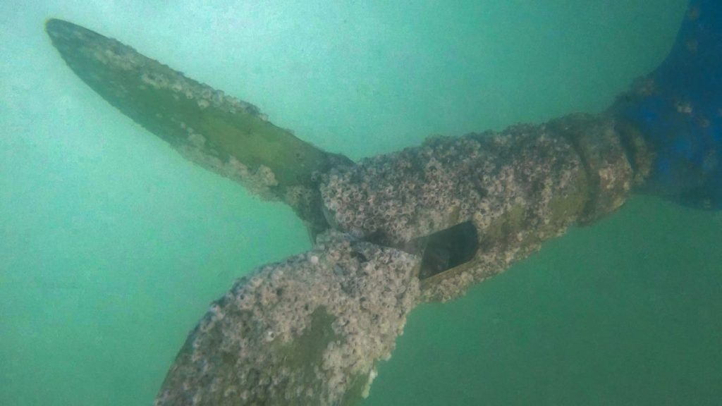 We really enjoyed a peaceful day at Punta Amapala but given the slow performance of the boat on the passage from Chiapas, I needed to get in the water to investigate. The water was murky, and visibility was 18 inches at best, but it was evident that a healthy growth of barnacles had flourished in the stagnant water in Marina Chiapas. Checking the prop, it was fairly fouled and trying to move it from open position to the feathered position and back, it looked likely that it was not actually opening fully. The barnacled bottom accounting for the slow sailing, and the prop condition accounted for the poor performance under power, the engine running at 175 degrees (4/5 degrees above normal), the slight smoke from the exhaust, and our burning three quarters of a tank of diesel from Chiapas alone.