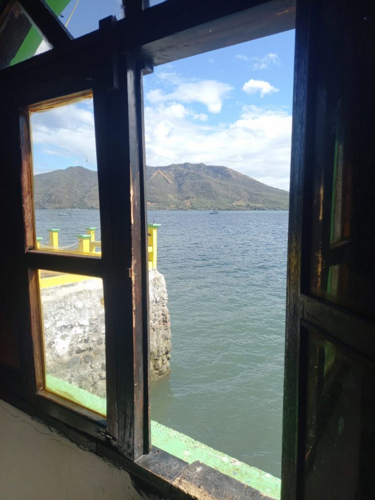 Looking to get set for our trip south to Costa Rica with moved from Playa Grande around to Puerto Amapala and anchored in a stiff breeze, dropped the dinghy and made the wet trip over to collect Peter and Tom and head to the Pier to check out. We were met at the pier steps by a few kids and a friendly man who eagerly helped us get out and tied the boat up. Seeing our now good friends from immigration, they were pleased to check us out and call again for the Port Captain. The Port Captain charged us a total of 35 Lempira for our Zarpe (approx. $1.50) which was the total of all of the cost of checking in and out of Honduras. A quick trip to the town to get some eggs and use up our spare lempira on some Nicaraguan Rum, we headed back to the boats to set off for the southern anchorage on Isla Meanguera, giving us the optimum departure point, and some good northerly protection for the night. We enjoyed a very pleasant downwind sail with just the jib, with the beautiful scenery of the Golfo around us, to arrive in the very protected calm conditions in this picturesque bay at Isla Manguera.
