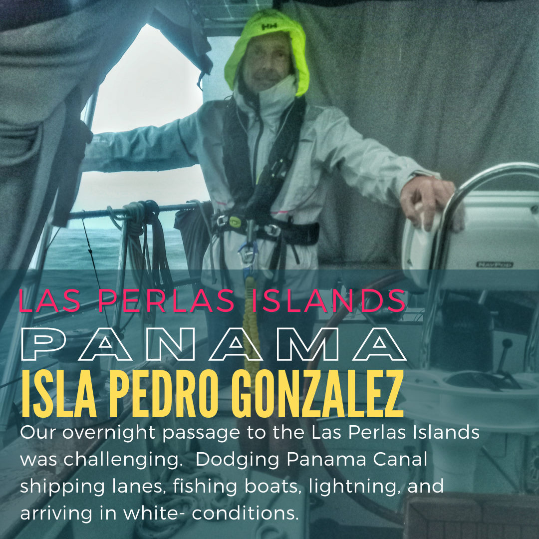 We had some trepidation about this passage that crosses around the notorious Punta Mala and leads into the Golfo de Panamá with adverse currents and typical headwinds. The advice was to head direct to the Las Perlas Islands to get a better angle on the wind and get out of the current as quickly as possible, while avoiding the busy shipping lane to and from the Panama Canal.