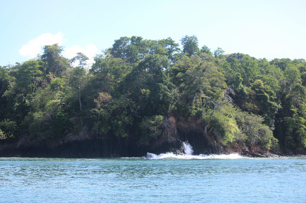 With Benau, and Punta Mala in mind, we headed for Punta Arena as a stop-over to reduce the next days mileage to a reasonable day-sail. The trip over was uneventful except for a couple of visits from dolphins. Bahía Arena is a particularly remote and jungly bay. As we arrived there were three fishermen, two of whom were diving in the water and one in the lancha. We suspected they were diving for sea cucumbers, or perhaps lobsters?