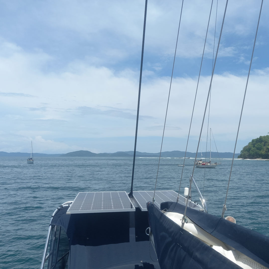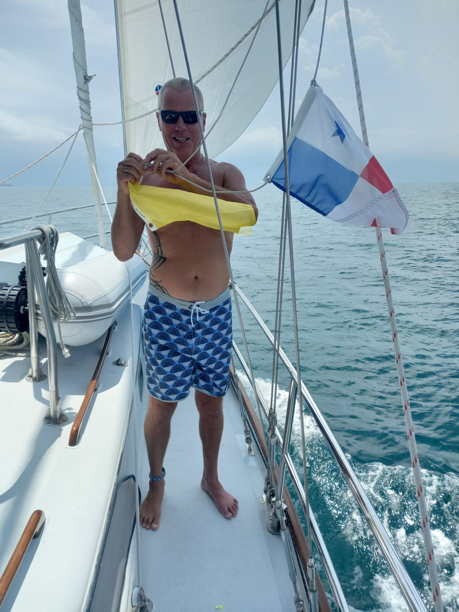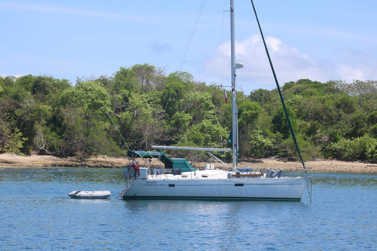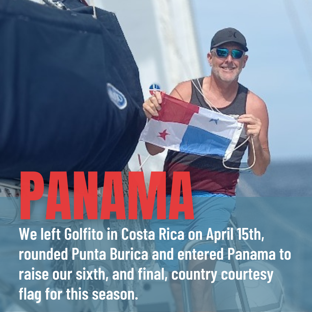 The trip was a motoring exercise but were helped along by a 1+ knot favorable current and made good time. We gave Punta Burica its due space and while rounding the point replaced the Costa Rican flag with the Panamanian.